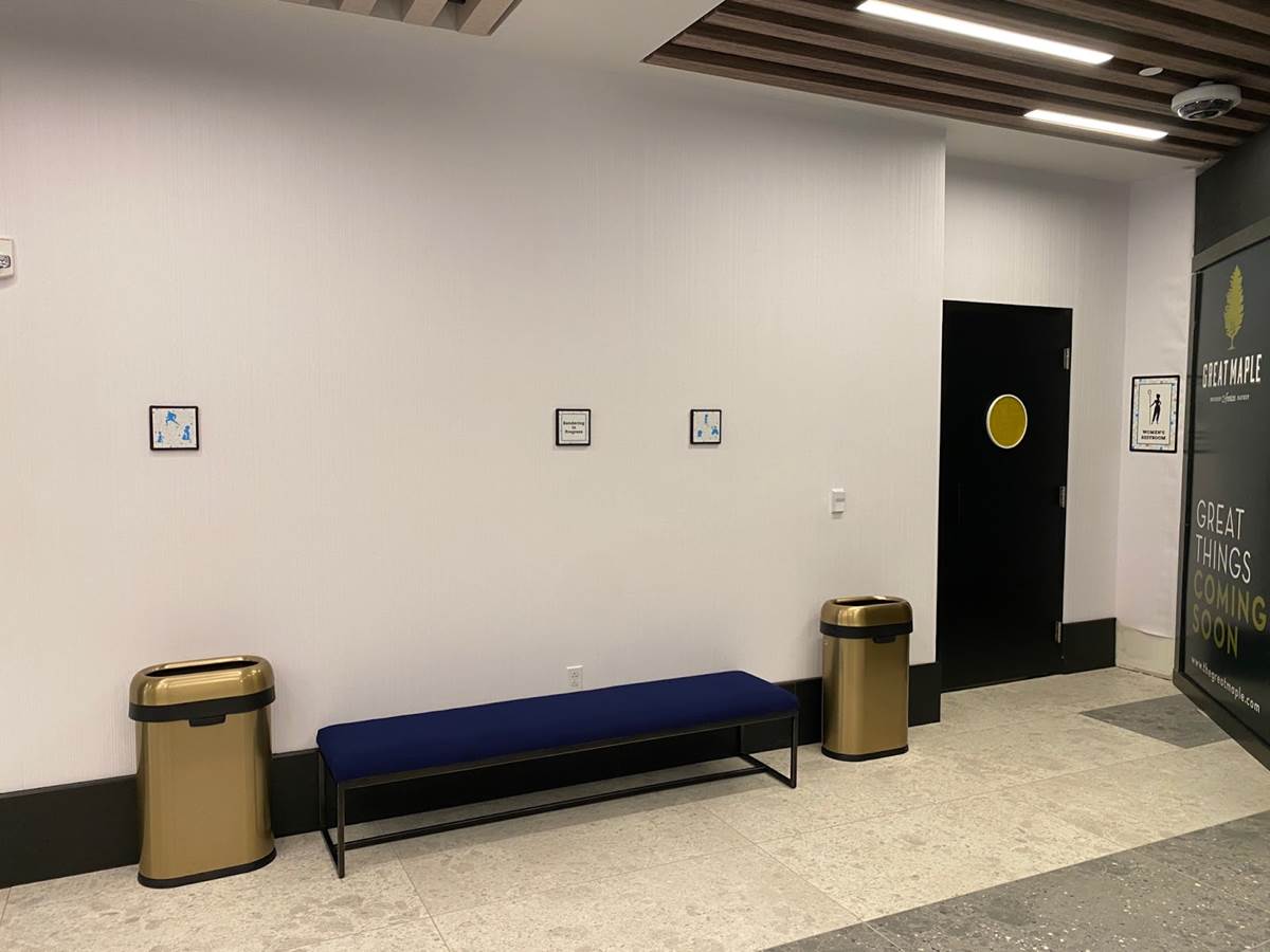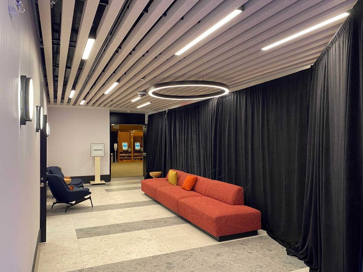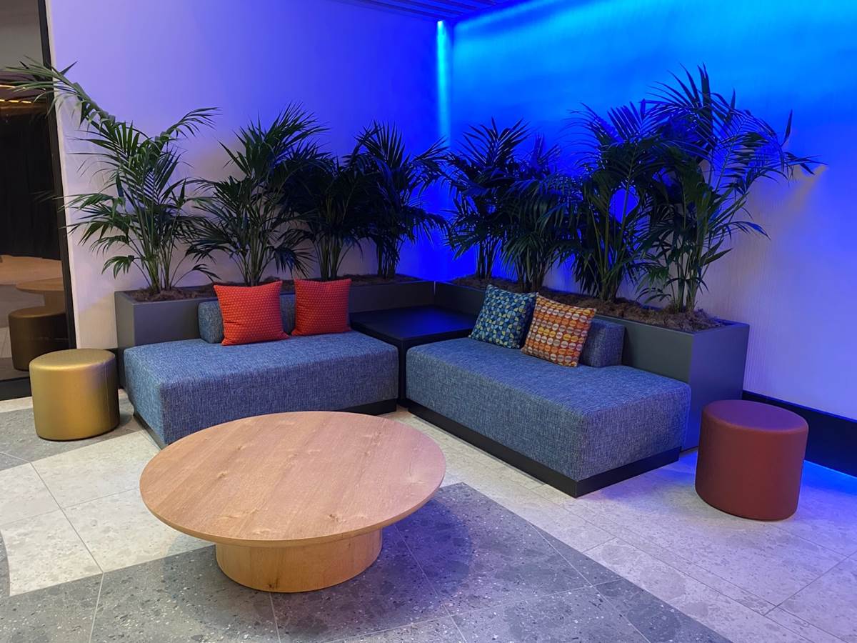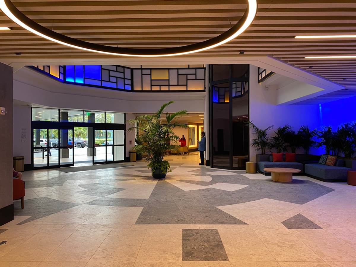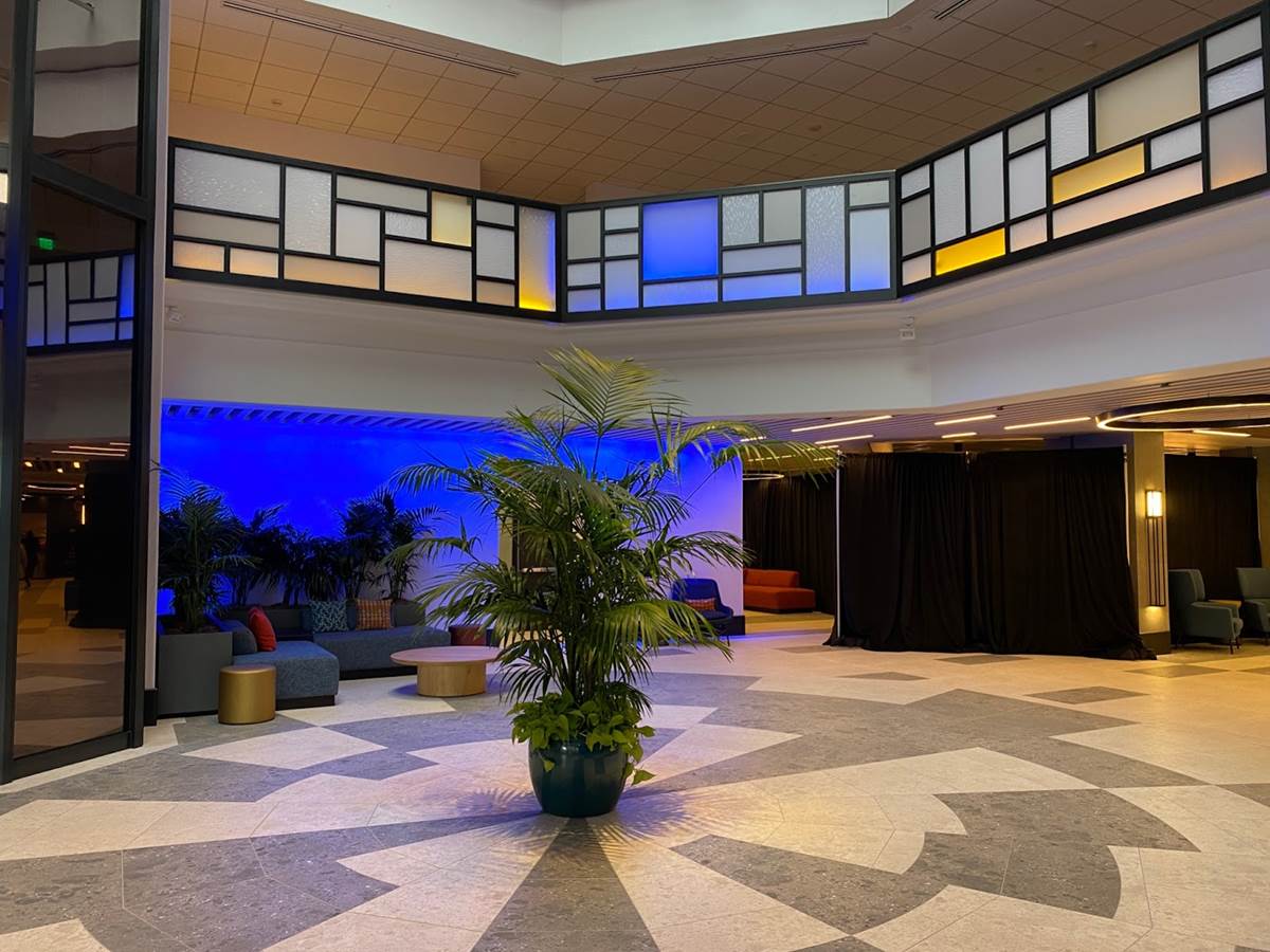 New furniture with Pixar-inspired coloring has been added throughout the lobby.