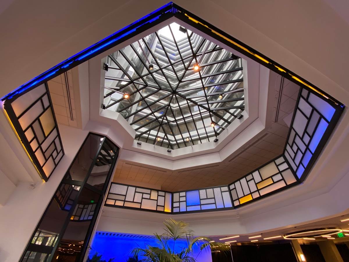 The lobby will continue to evolve over the next few months and will begin to blend beloved Pixar imagery with the hotel’s contemporary setting. For now, while the updated architecture has been revealed, we’re still awaiting some more thematic touches, such as Pixar Lamp playfully balancing atop its ball, and a whimsical, colorful character-inspired mobile.