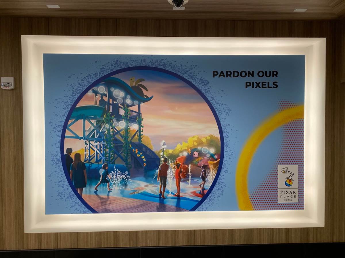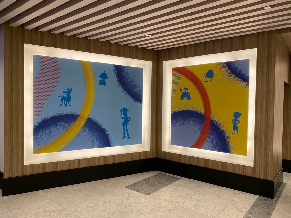 When the transformation is complete, iconic images from Pixar films will be at the front desk, with characters pictured larger than life in curated artwork.