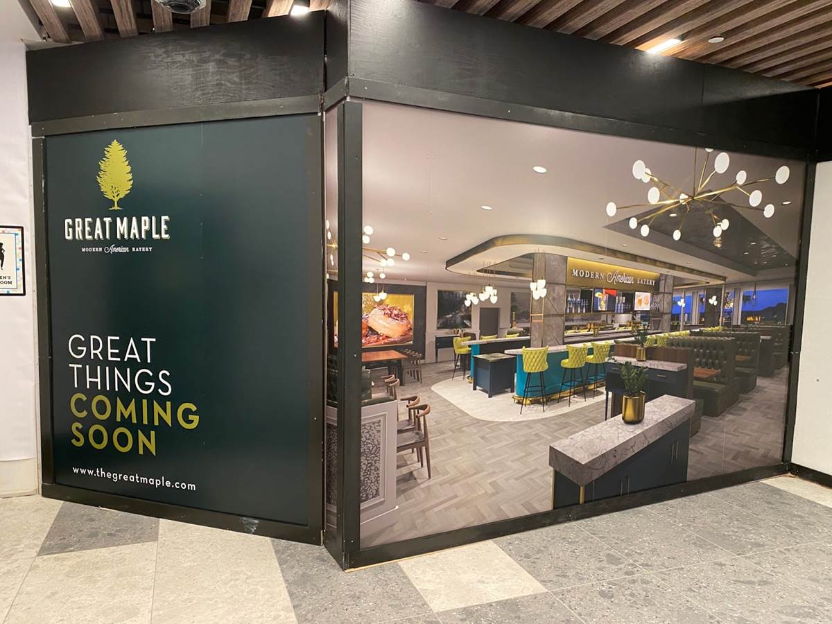 This fall, the hotel will unveil a new restaurant at the resort, Great Maple. This Southern California-based modern American eatery specializes in playful takes on upscale comfort food. Serving breakfast, lunch and dinner all day, the ground-floor restaurant will be easily accessible to hotel guests, local diners and theme park goers. For now, the construction walls block off the former PCH Grill featuring concept art for Great Maple.