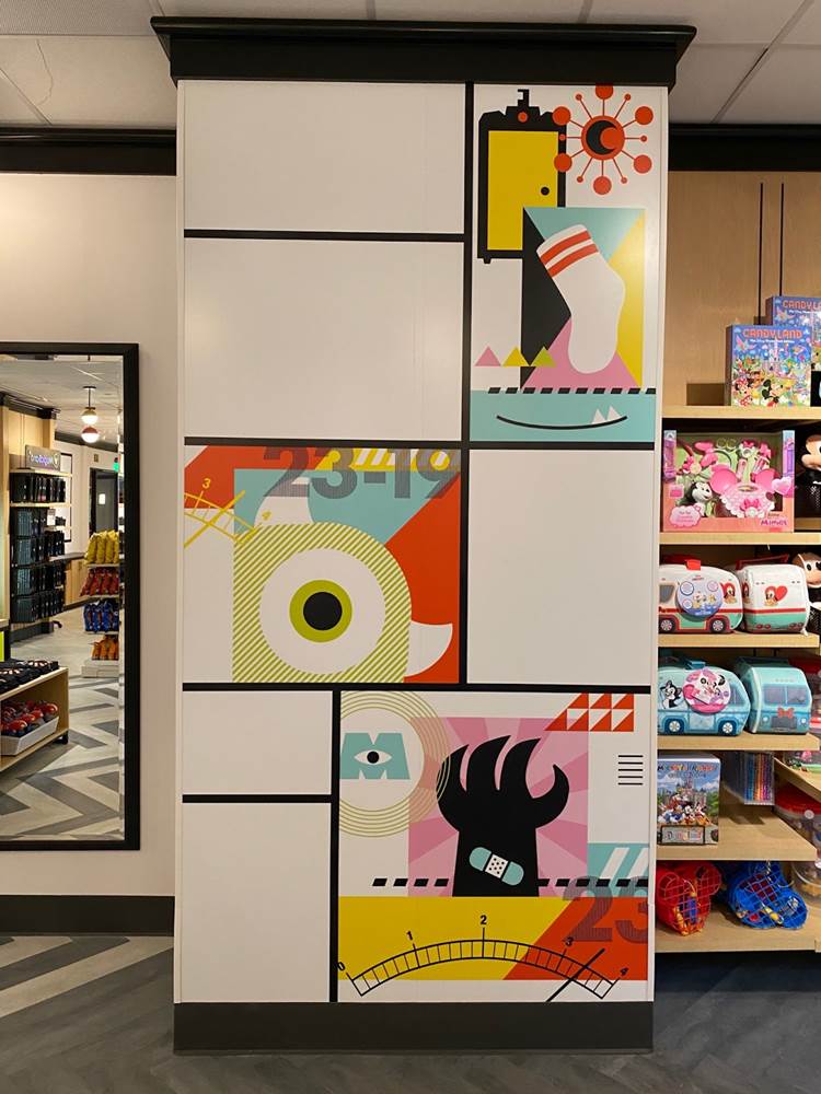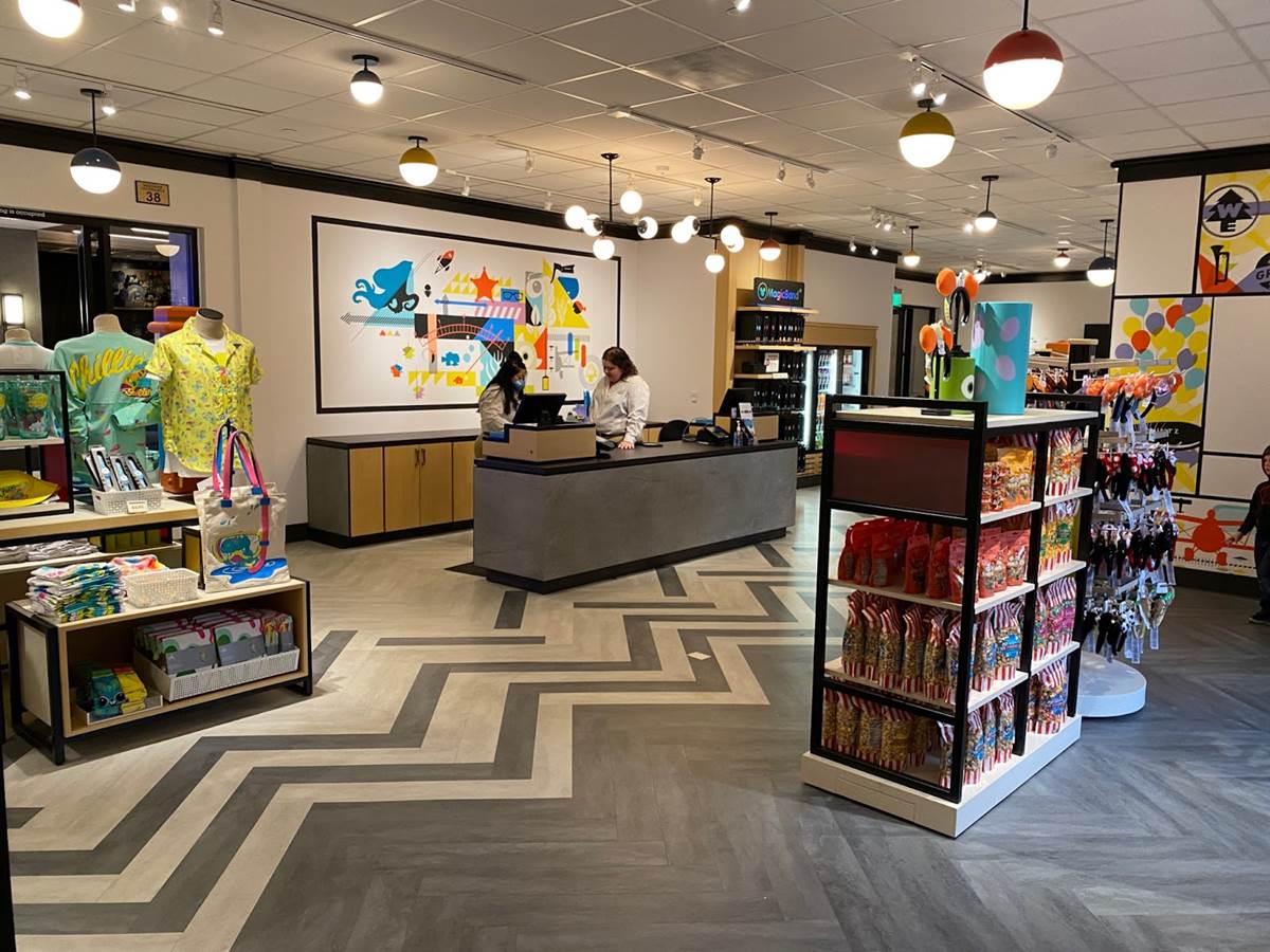 Last week, we got new concept art for the transformation of Disney’s Paradise Pier Hotel into the Pixar Place Hotel. Today we stopped by the hotel to see what has changed, and spoiler: it’s a lot! The refurbished lobby and gift shop have been partially revealed as the transformation continues.