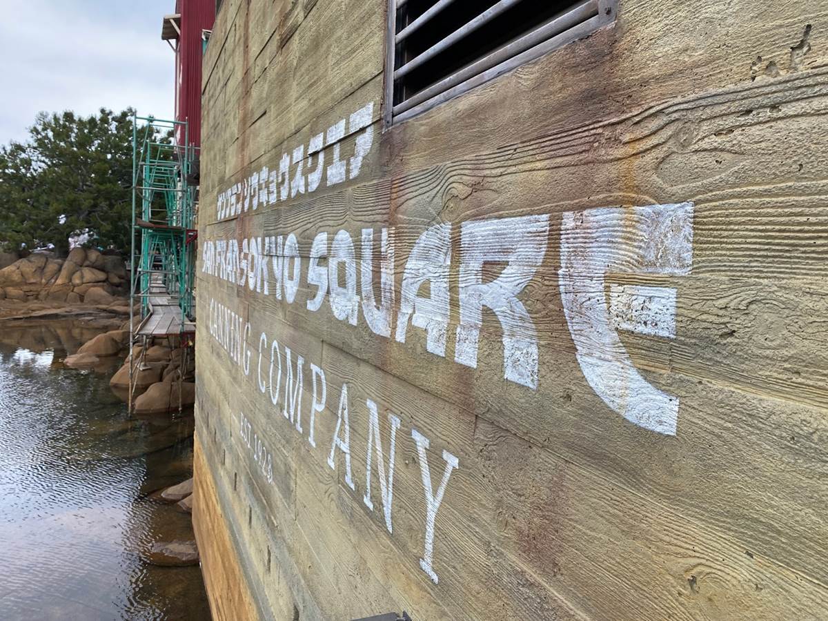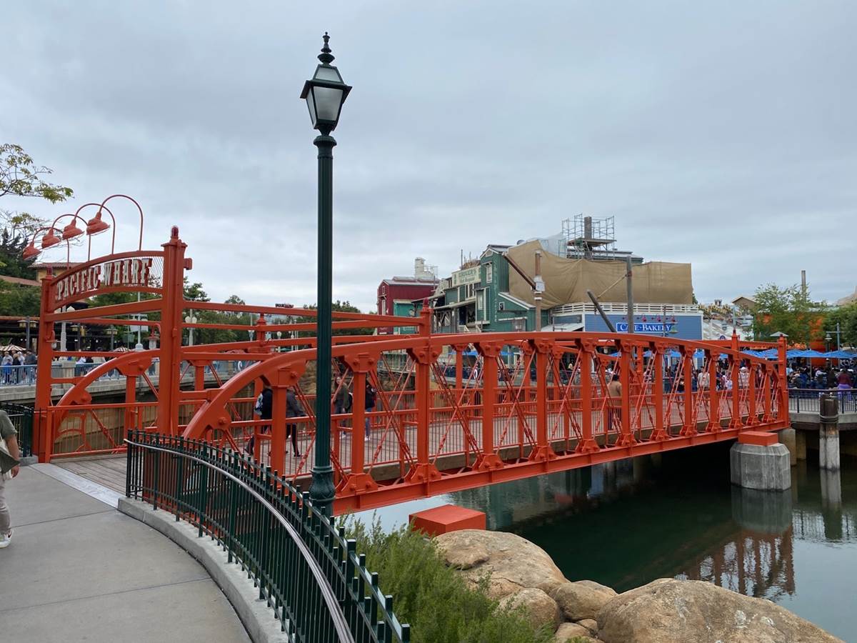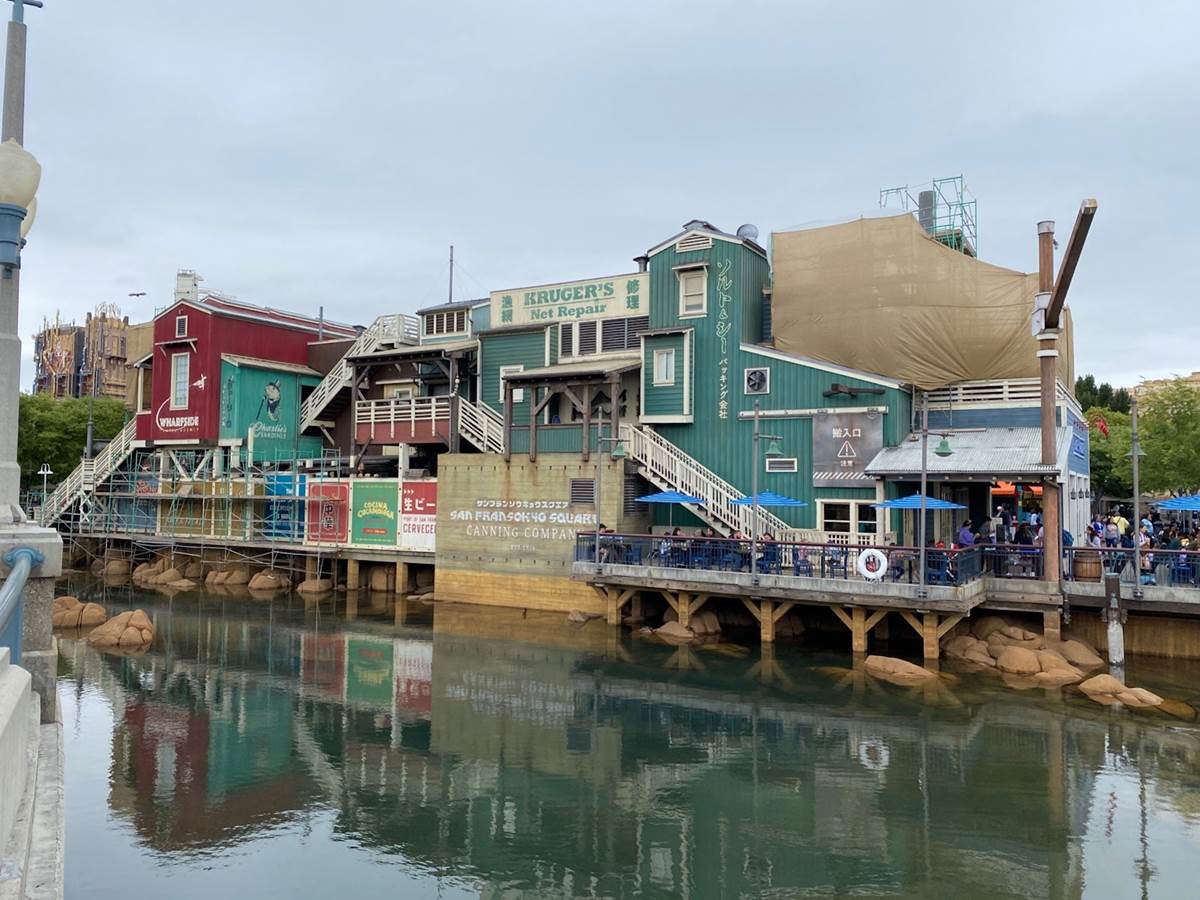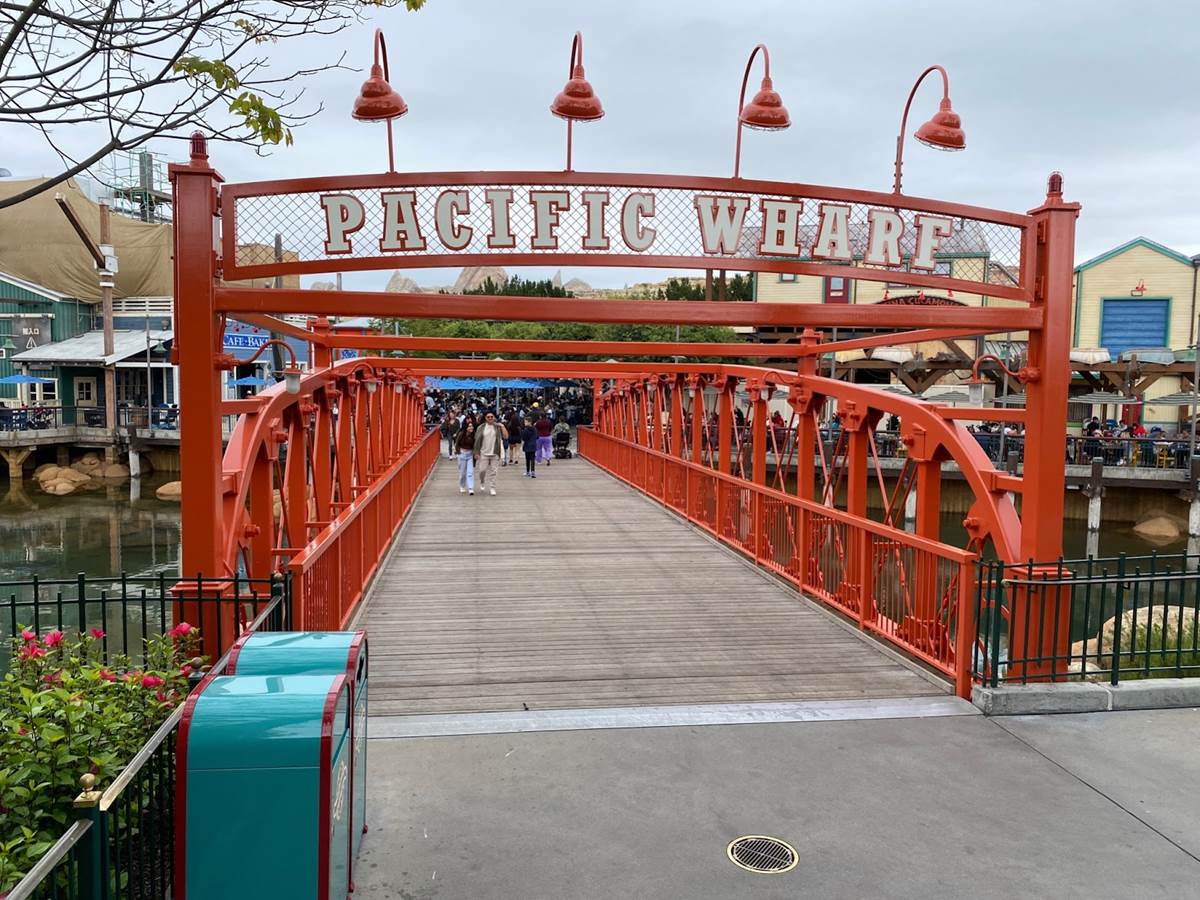 Plenty of new signage has been painted onto the buildings of the future San Fransokyo Square, inspired by the city featured in Big Hero 6. Most of the old Pacific Wharf establishments are sticking around, such as Cocina Cucamonga. Plenty of Big Hero 6 references have been worked in, such as the Baymax you can spot flying above the Wharfside Travel Agency sign.