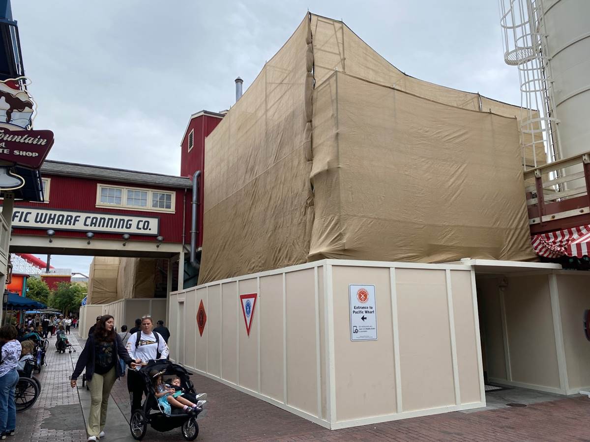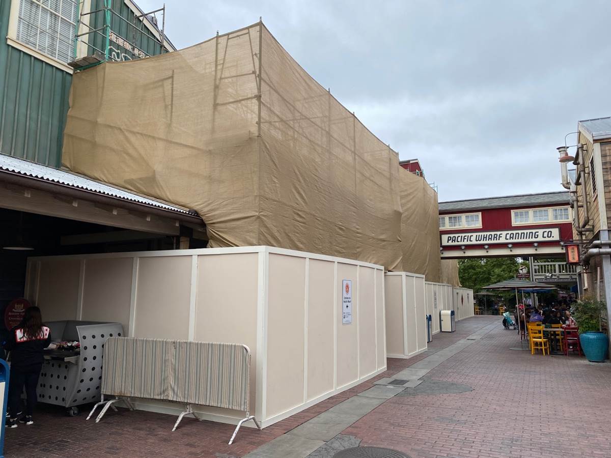 Construction on the reimagined San Fransokyo Square, which will replace Pacific Wharf at Disney California Adventure, is coming along, with new thematic details and signage being installed throughout the area.