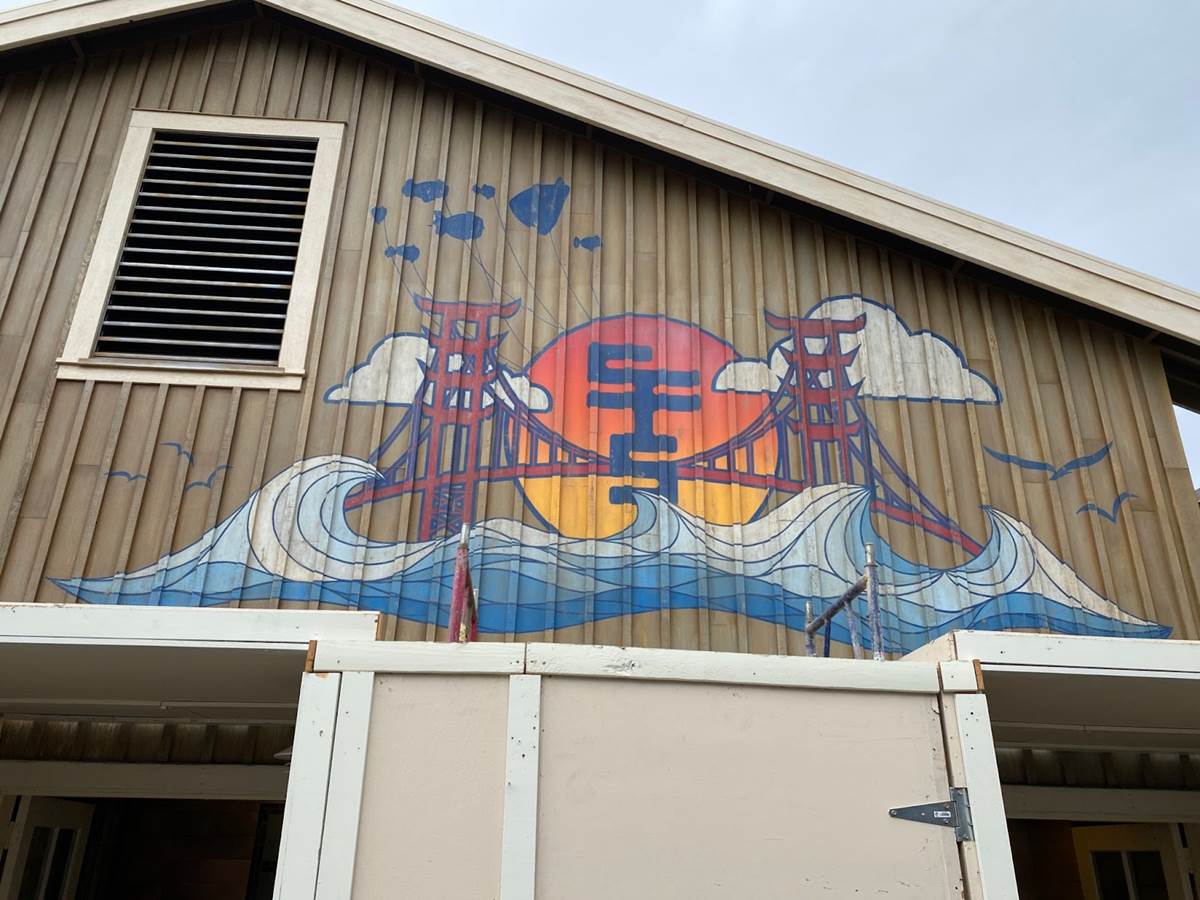 A beautiful new piece of art featuring the San Fransokyo Gate Bridge now adorns the building housing the area’s restrooms.