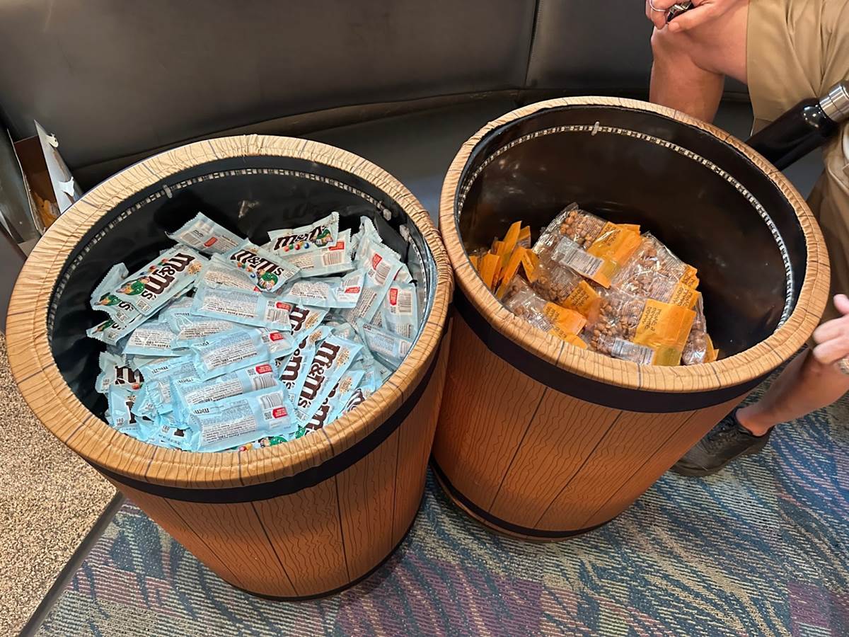 Also available complimentary are some M&Ms and Guardians of the Galaxy-themed Zarg Nuts, along with a water station.