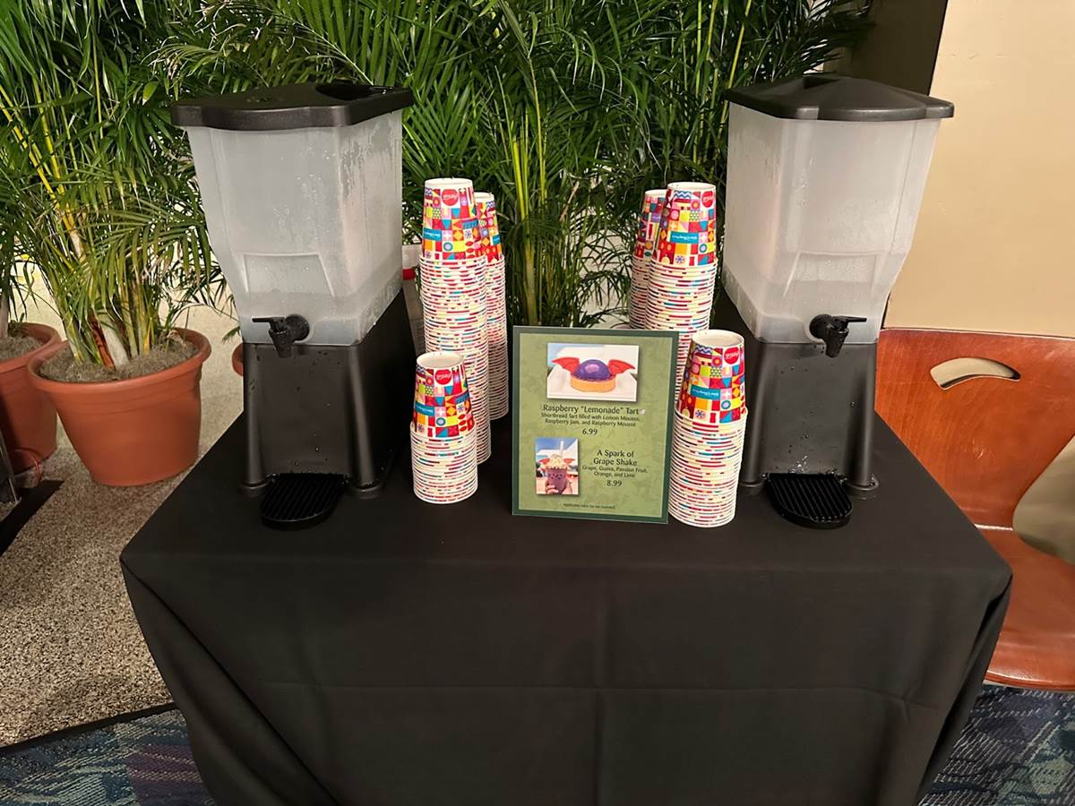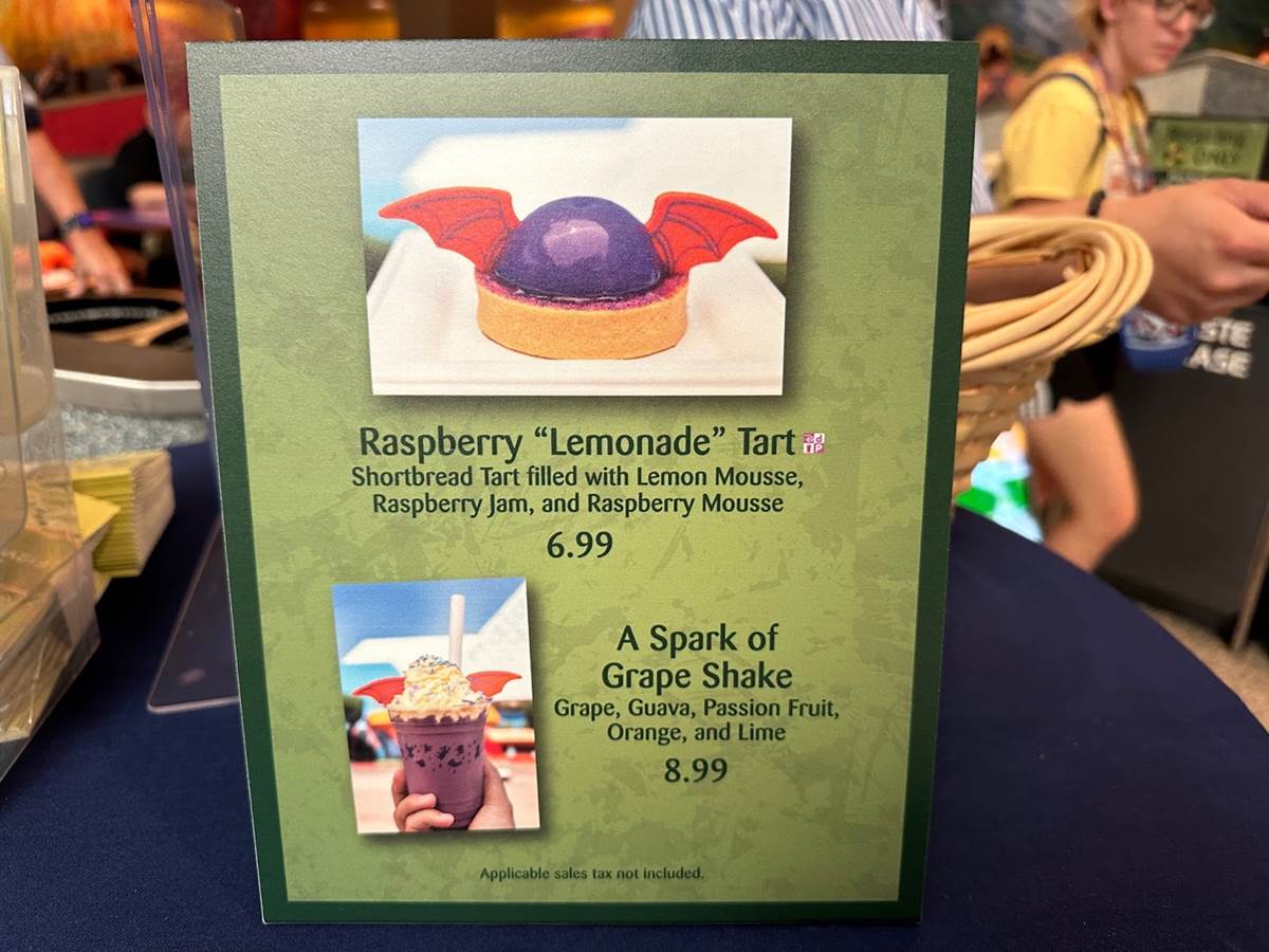 Two Figment-inspired desserts, the Raspberry Lemonade Tart and A Spark of Grape Shake, are both available at Sunshine Seasons.