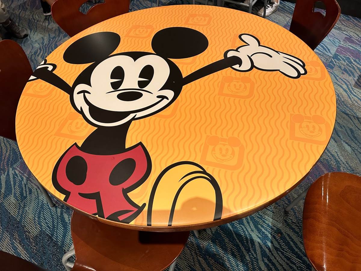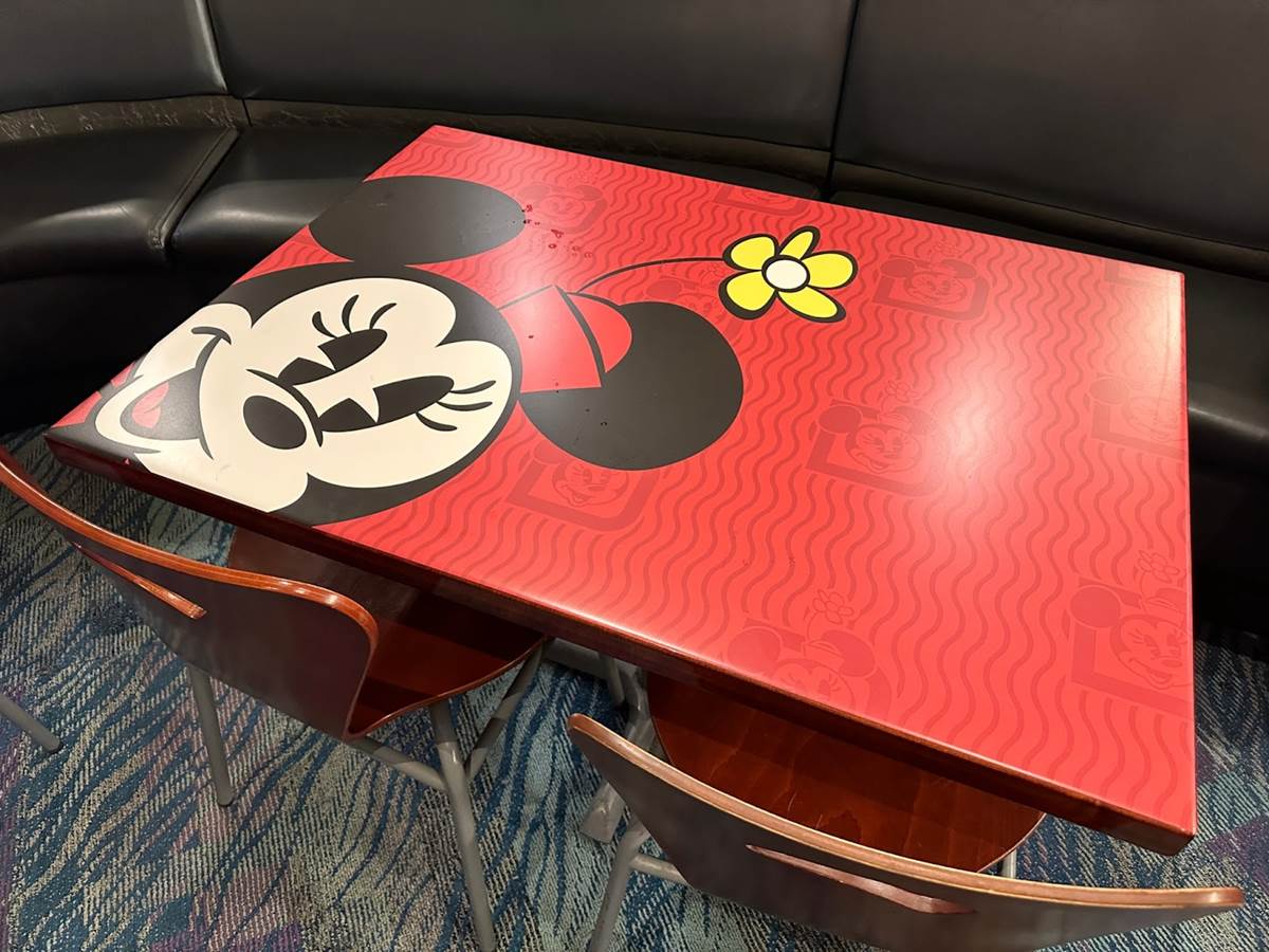 The tables have received some fun Annual Passholder coverings featuring some different Disney characters.