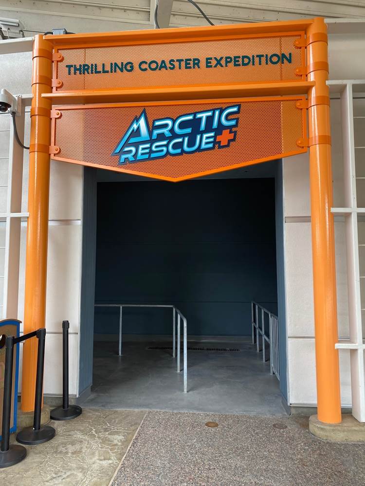 The family friendly coaster features speeds of up to 40 mph and 3 launches across 2,800 ft of track. The ride’s station makes use of one of the former Wild Arctic simulator bays, while the coaster experience itself takes place outside.