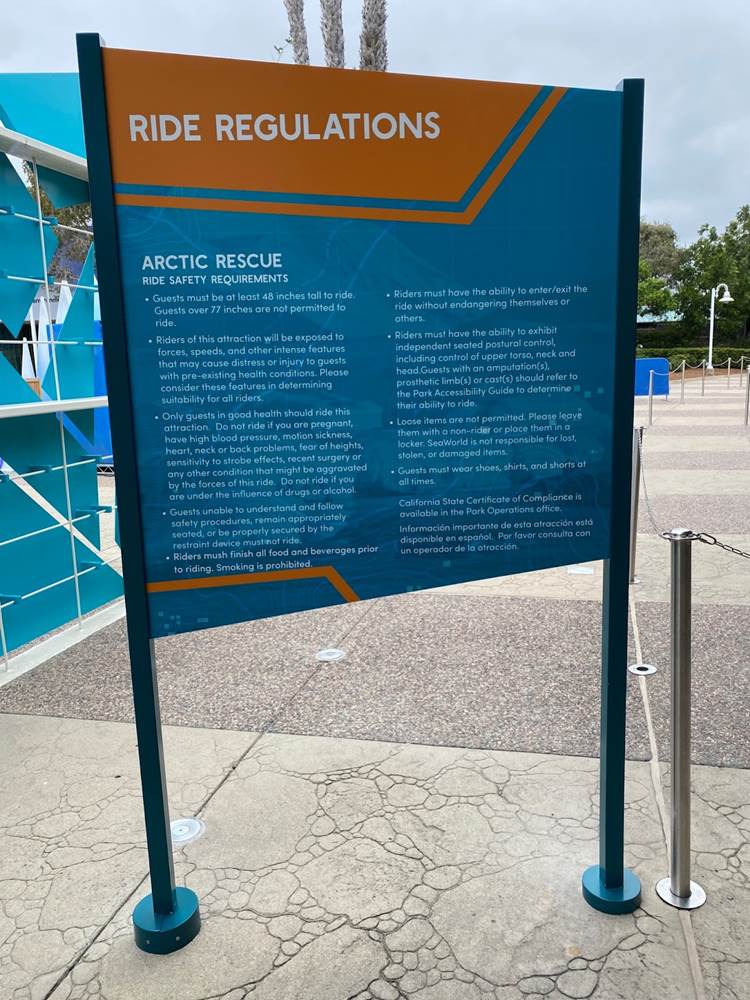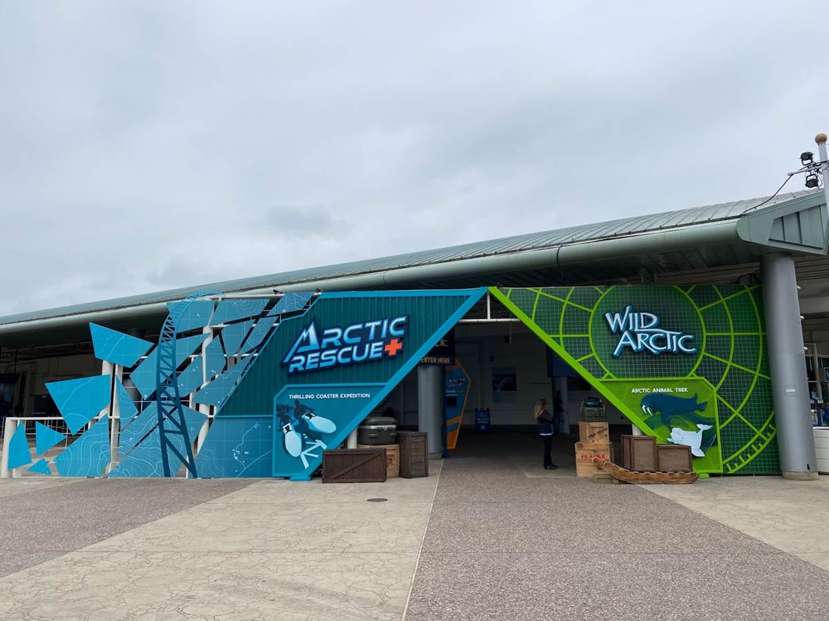 As is par for the course for SeaWorld, the exterior queue features many educational displays about the arctic and the animals that call it home.