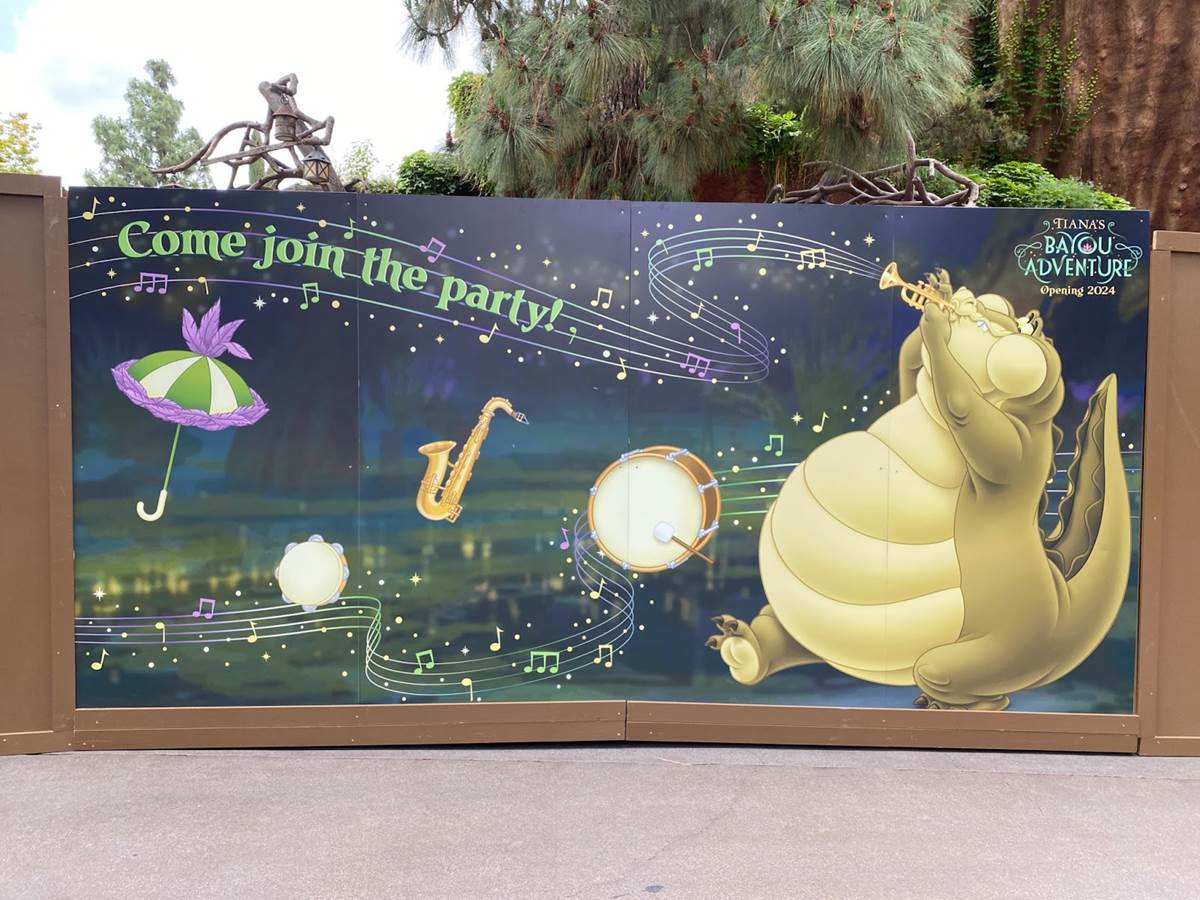 - There’s also a new Tiana’s Bayou Adventure backdrop photo-op along the north side construction wall.