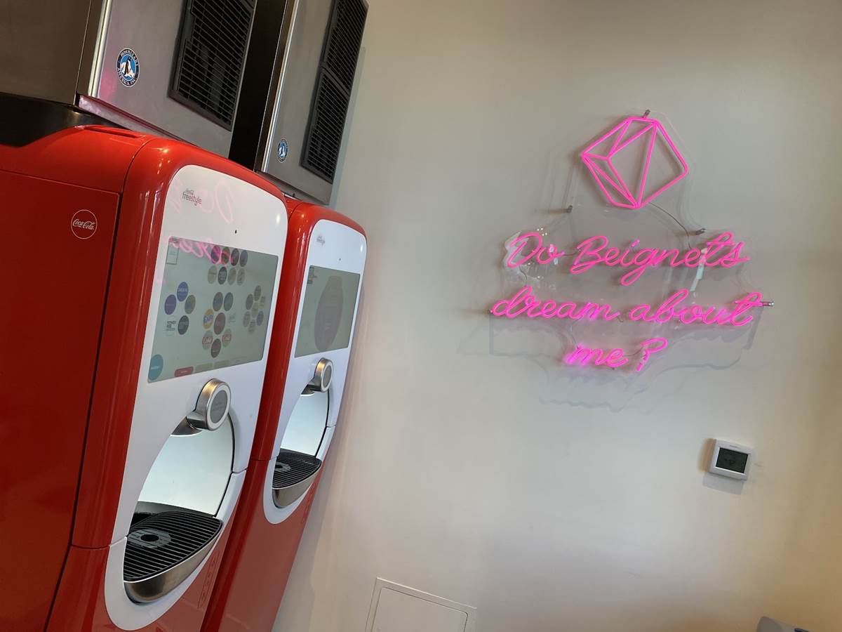 Before adopting the new aesthetics, Beignets Expressed and Neighboring Jazz Kitchen restaurant were based on the Ralph Brennan original in New Orleans, where the family entered the hospitality business in 1943 with the purchase of the historic Old Absinthe House on Bourbon Street in the French Quarter. Once the headquarters of the notorious pirate Jean Lafitte. During its 200-year-plus history, personalities ranging from Mark Twain to Frank Sinatra have passed through its doors.