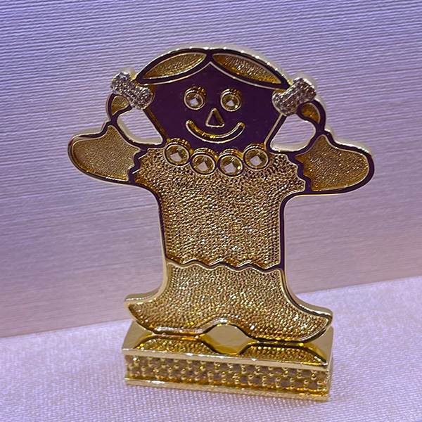 - The gingerbread movers are custom designed by renowned jeweler Christian Tse, featuring sterling silver and 18K gold plating.