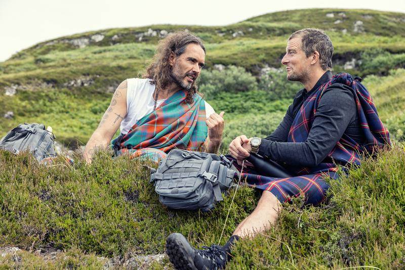 - Bear Grylls takes actor, activist and author Russell Brand on an adventure down the jagged coast of a secluded Scottish isle in search of 16th-century castle ruins to shelter in. Along the way, Bear teaches the brash and bombastic Brand survival skills that dredge up a long-forgotten but highly charged fear he must overcome to reach his extraction.