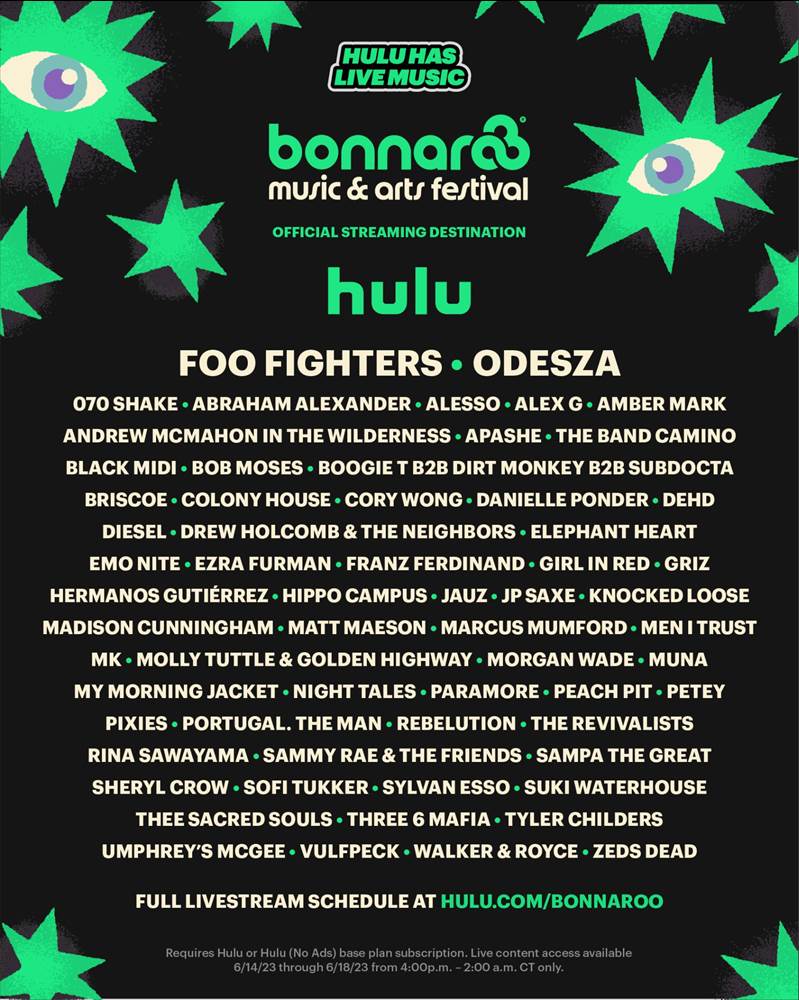 Artist Lineup Revealed for Bonnaroo Music & Arts Festival Livestream on Hulu