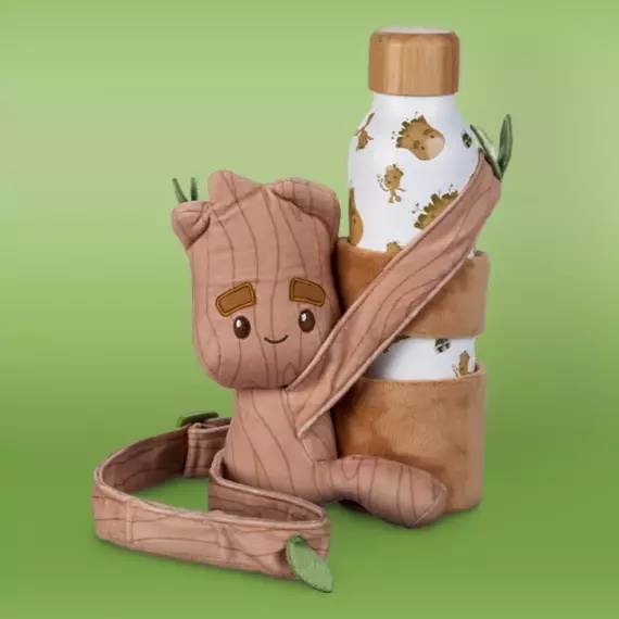 - The Guardians of the Galaxy Groot Collection will see the sapling in all his goofy glory as he tumbles his way through summer. We don’t know everything that will be featured in the series, but there is a water bottle with a wooden cap and a Groot plush water bottle holder, complete with a crossbody strap.