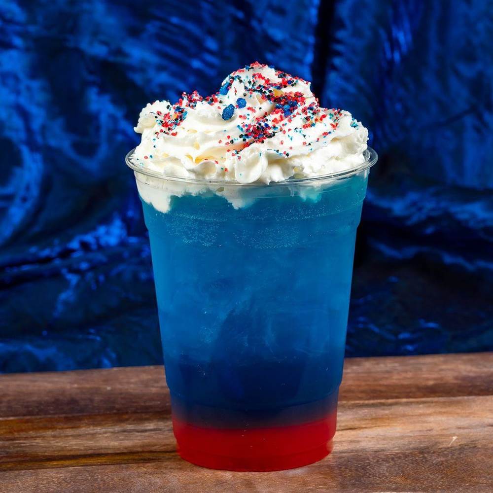 - Red, White & Blue Shake: Vanilla shake with wild cherry and blue raspberry slushies and whipped topping (Non-alcoholic)
