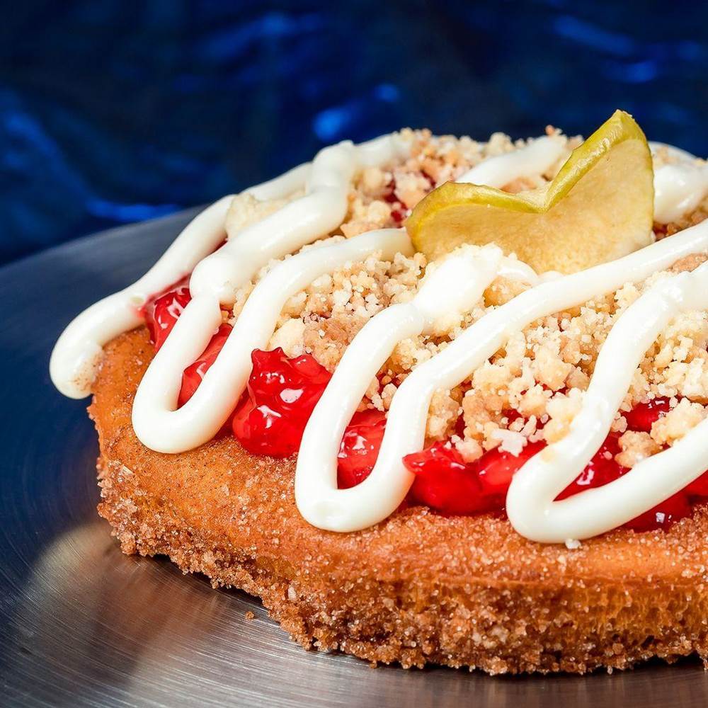 - Like an Apple Pizza Pie at Terran Treats: Cinnamon-sugar fried pizza crust topped with apple and cranberry filling, streusel, and cream cheese frosting