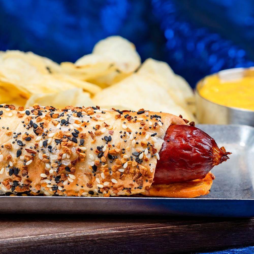 - Cap'n Everything Dog at Outdoor Vending Carts: Hot link wrapped in pizza dough topped with everything bagel seasoning and served with a side of mustard cheese sauce and potato chips