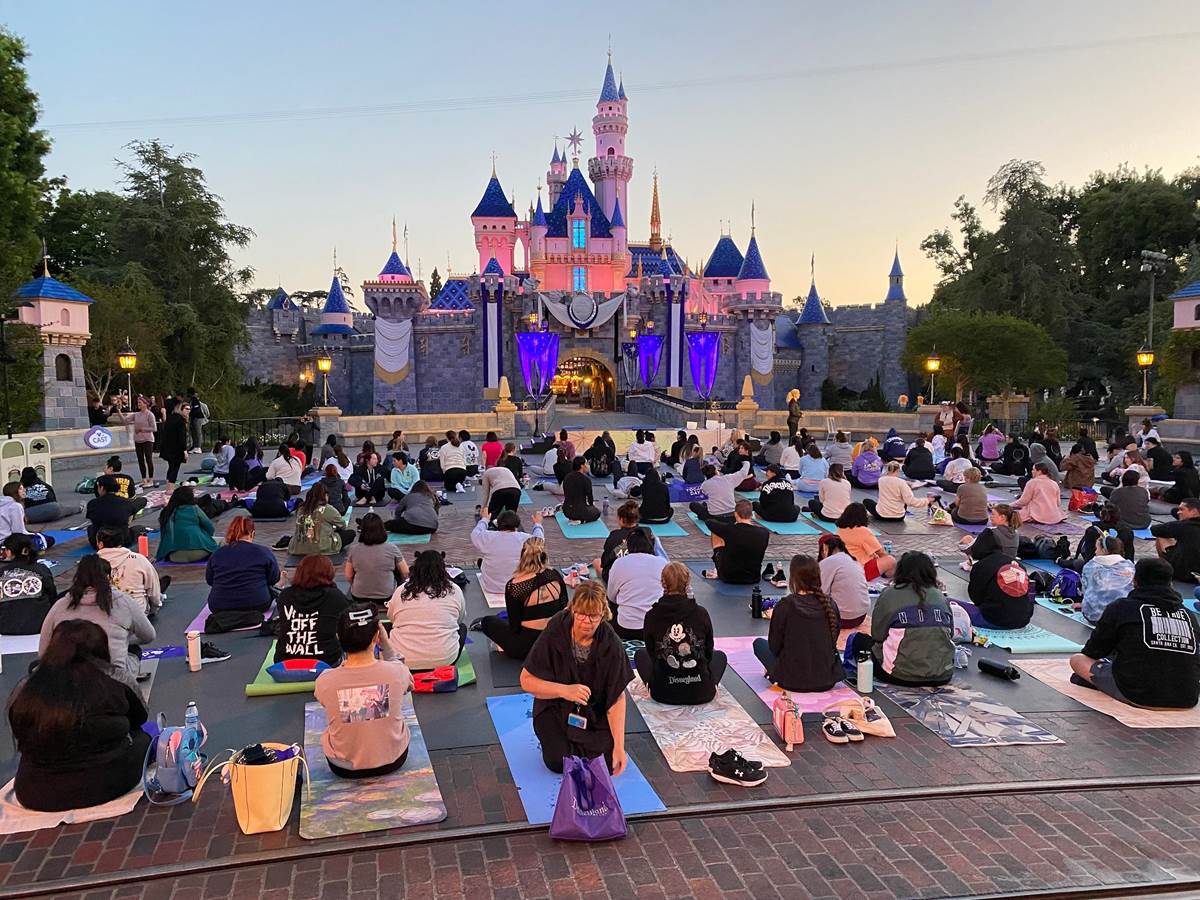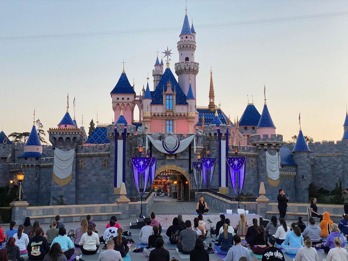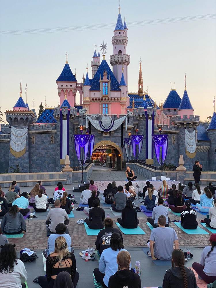 Disneyland Resort Cast Members were able to experience a special opportunity this morning as part of a now-annual wellness event - sunrise yoga in front of Sleeping Beauty Castle as part of International Yoga Day.