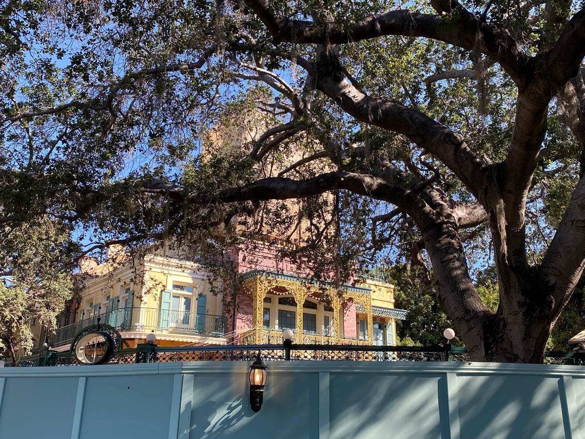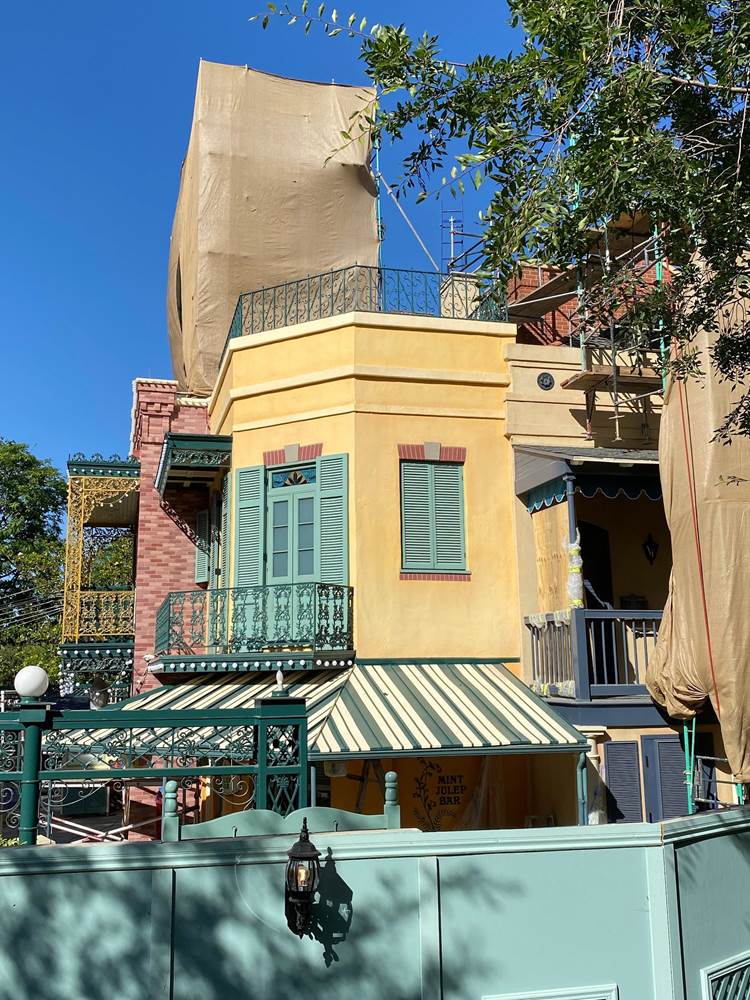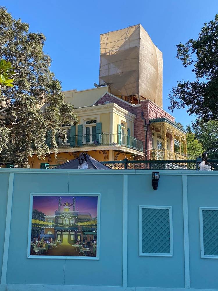More visible progress has taken place in the nearby New Orleans Square. Over at the fan-favorite eatery, French Market, that transformation into Tiana’s Palace continues. Tarps and scaffolds have been removed to show a new facade that strongly resembles the concept art that is also displayed on the construction walls blocking the project.