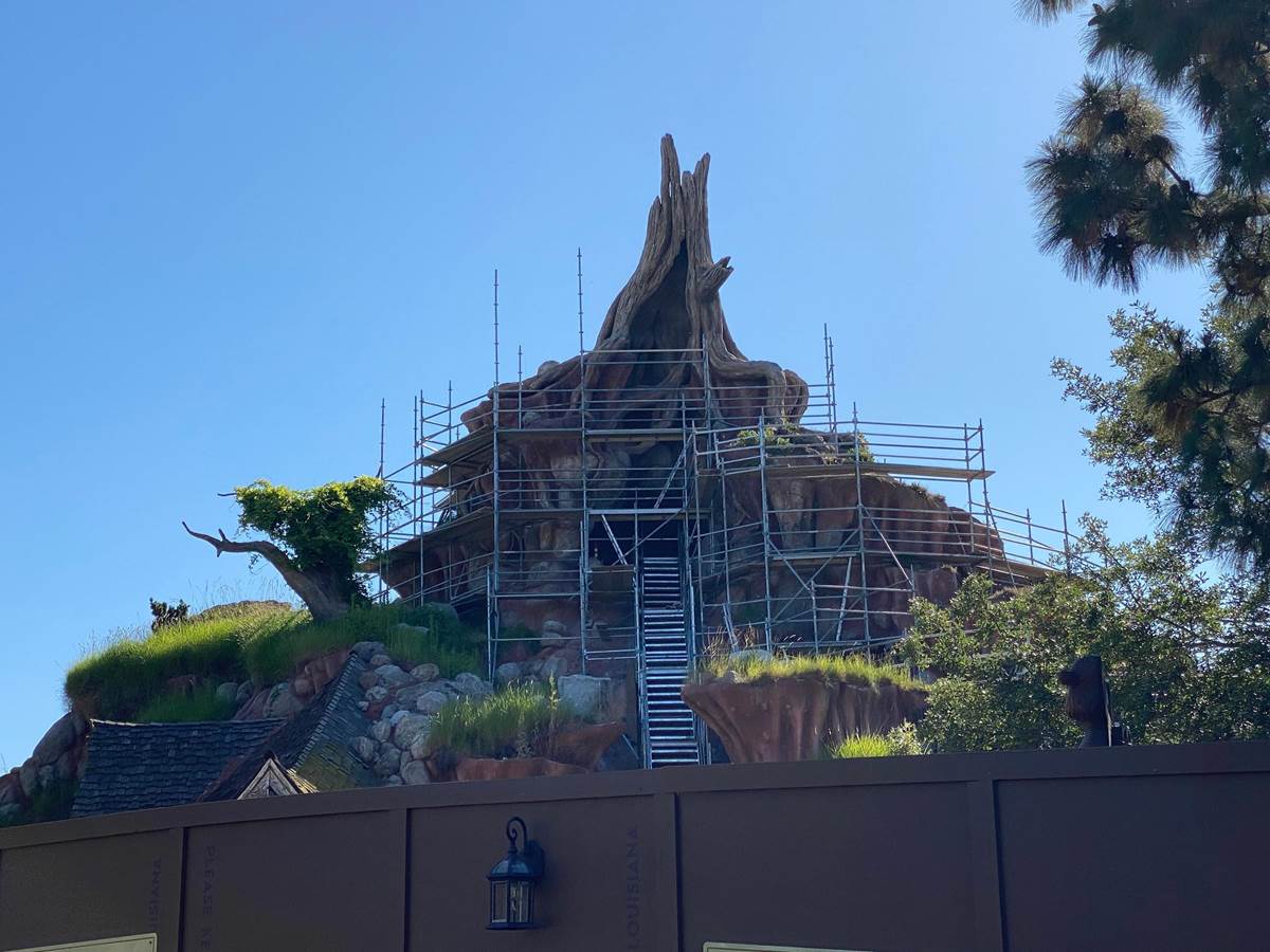 Late last month, Splash Mountain permanently closed their doors at Disneyland Park to make way for the new Tiana’s Bayou Adventure to take over the space. Now, several weeks later, guests can start seeing visible construction being done on the Disneyland peak as it turns into the new attraction.