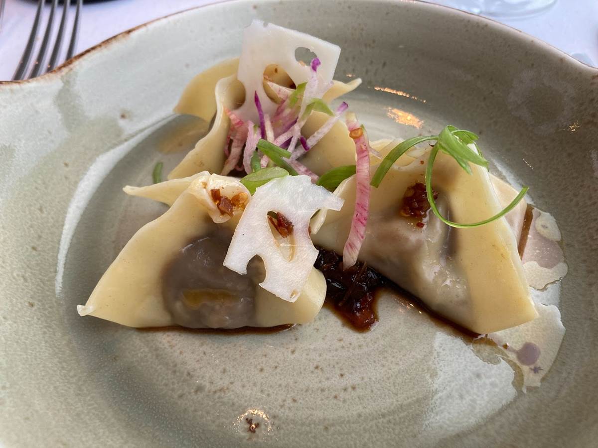Starting with the appetizers, or Market Inspirations, guests can enjoy sushi, salad, pizza and a variety of other options (see the menu above). My personal choice was the Braised Beef Short Rib Wontons and they may have been the most delicious thing on the menu for any course. The Black Truffle Pizza was a close second.