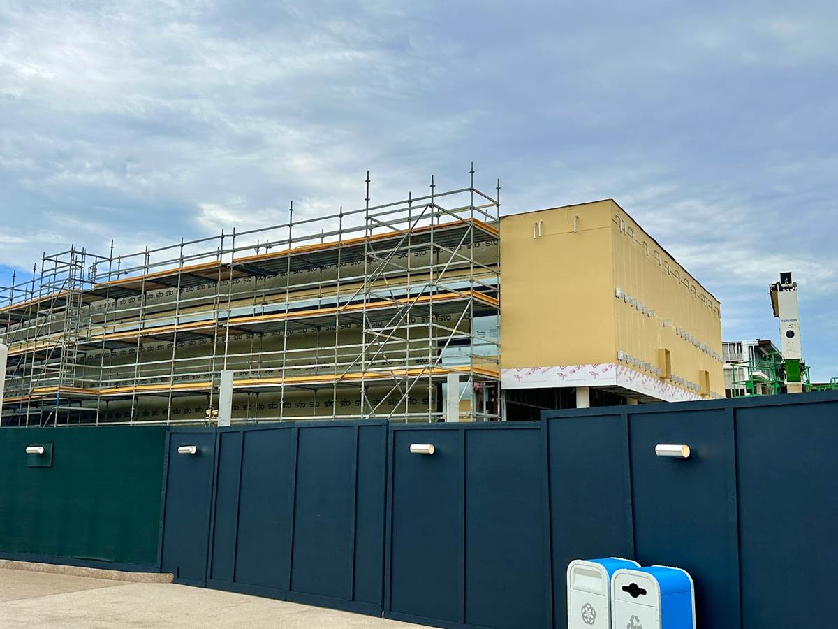 Plenty of progress is being made on CommuniCore Hall and CommuniCore Plaza, a multi-use facility and outdoor event space, respectively, that bring the park’s international festivals to the center of EPCOT. CommuniCore Plaza will have the flexibility to host intimate musical performances that extend out into the nearby gardens, and CommuniCore Hall will be a flexible exhibition and gallery space, offering a wide variety of experiences that highlight art, live music, food – complete with a demonstration kitchen – and more. In addition, adjacent to CommuniCore Hall will be a new Mickey & Friends location where you can meet some of your favorite Disney pals.