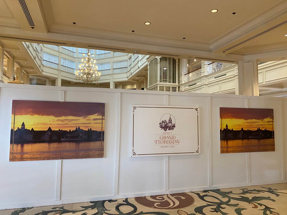 The renovation of the lobby of Disney’s Grand Floridian Resort & Spa at Walt Disney World has begun, with construction walls greeting guests as they first enter the massive atrium.
