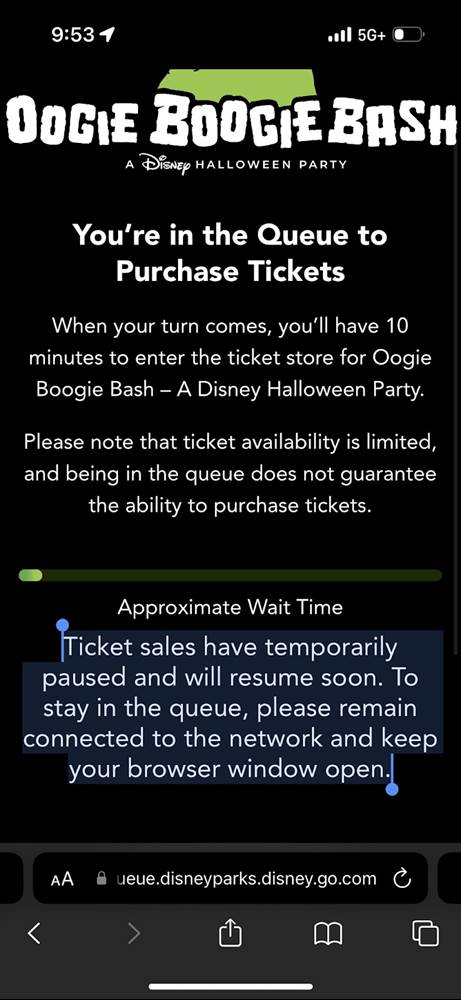 - “We are aware of a technical issue with Oogie Boogie Bash ticket sales, which have been temporarily paused. Teams are working to find a resolution as quickly as possible. We will update the website when we know more, and guests are advised that call center wait times are currently heavily impacted."