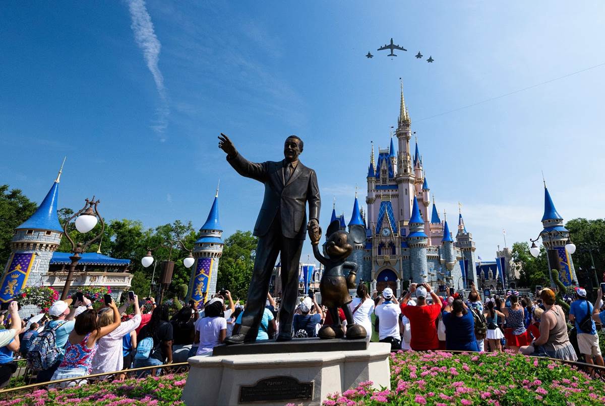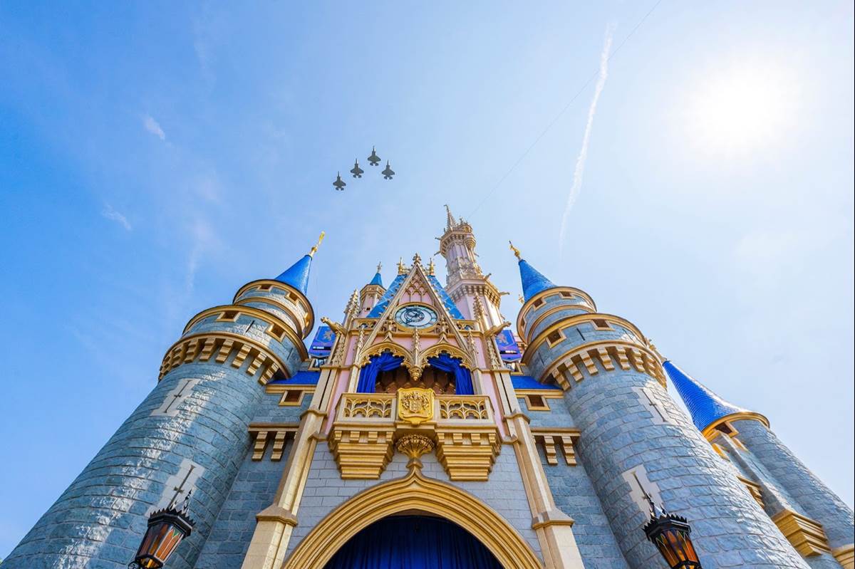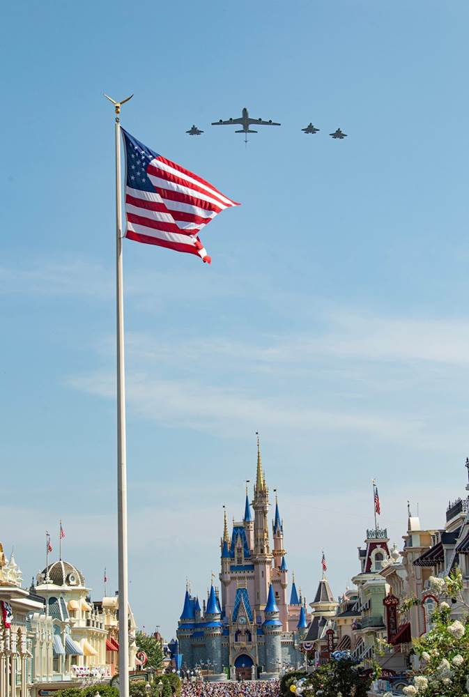 - On Tuesday, July 4th, the Magic Kingdom hosted a military flyover above Cinderella Castle as a reflection of The Walt Disney Company’s nearly 100-year-long history of supporting the military, dating back to Walt and Roy Disney who both served during World War I.