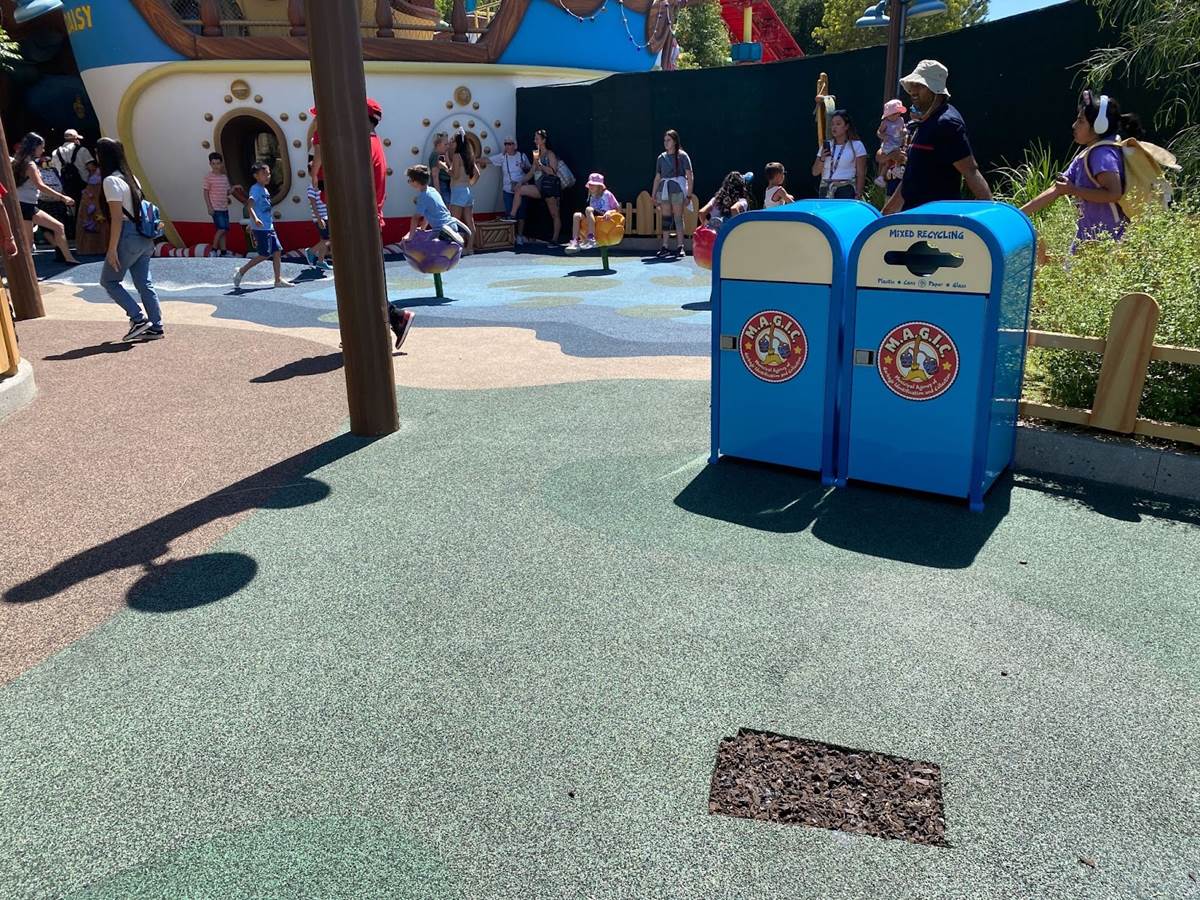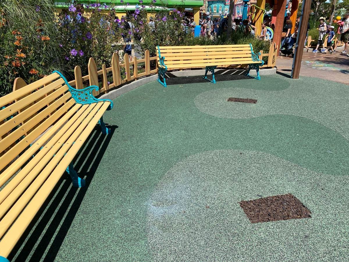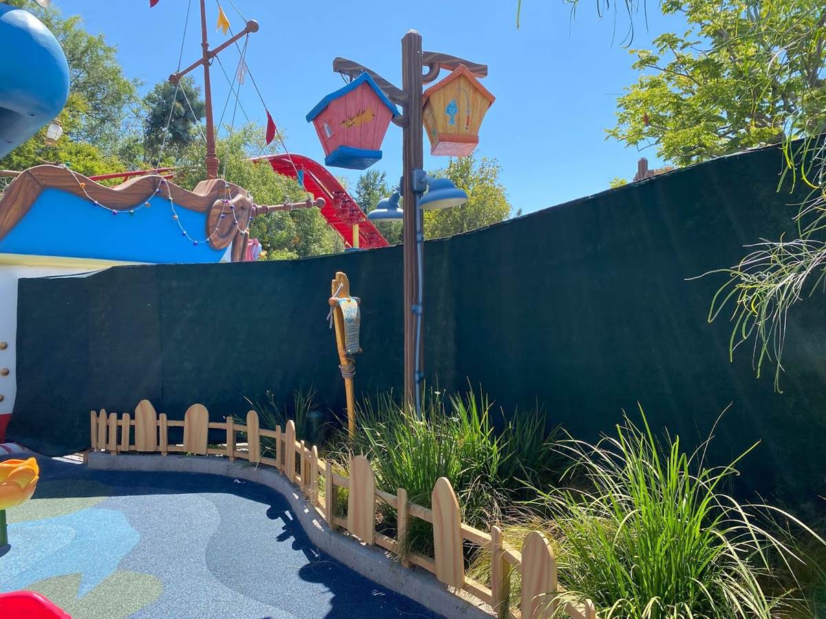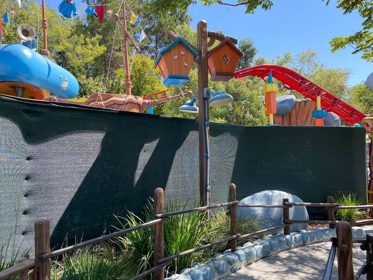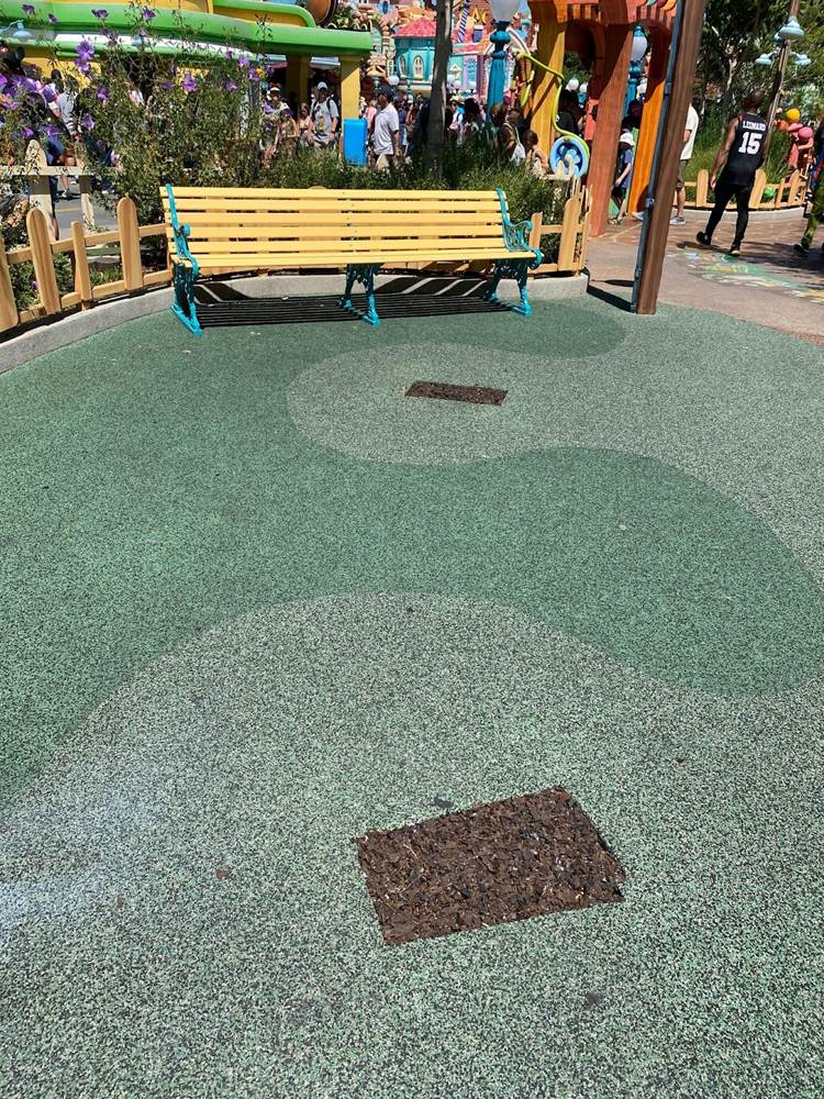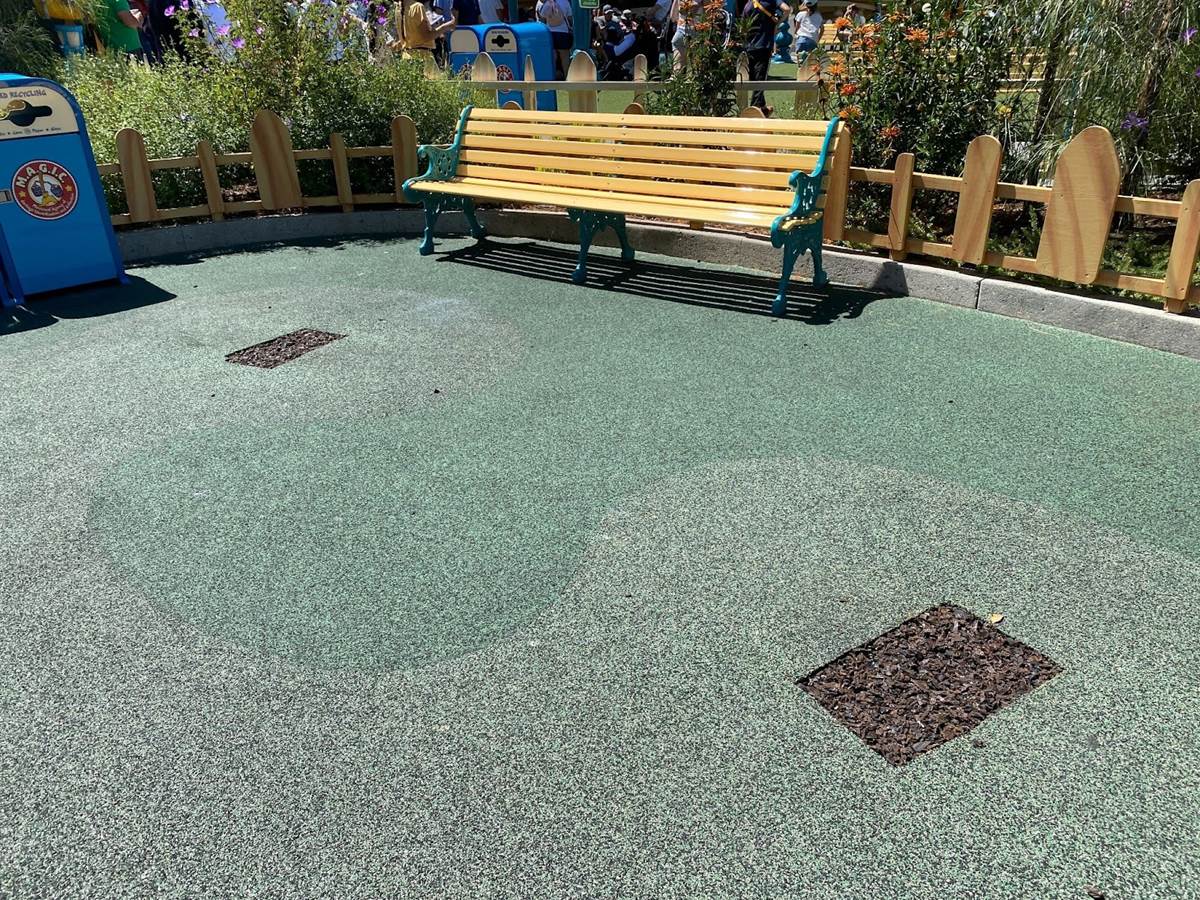 - New playground-style equipment that was installed as part of the new experience has been removed with no replacement to be seen. The Sprinkle Spring 5000s, more like a spring-loaded see-saw, themed to oversize lawn sprinklers in Goofy’s yard, are no longer available.