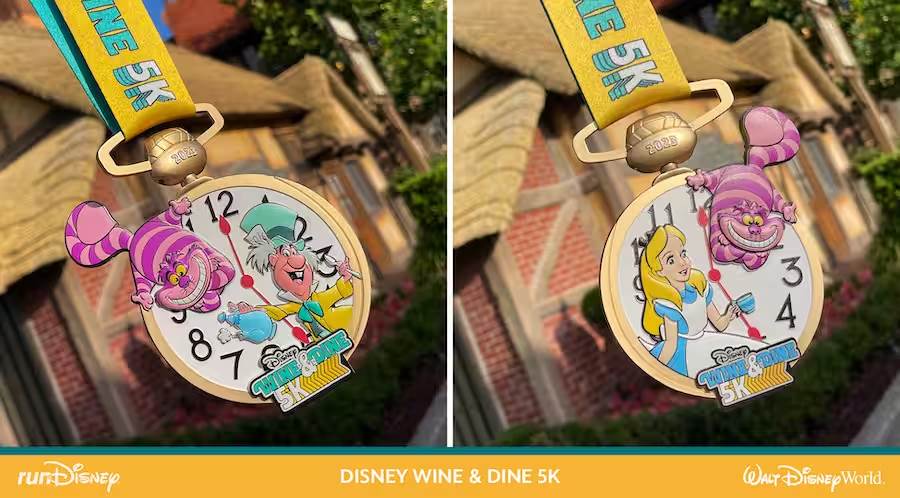 - Prepare yourselves for a 3.1 mile “spin" around EPCOT with Alice, the Mad Hatter and all their Wonderland friends from Disney Animation’s Alice in Wonderland during the 2023 Disney Wine & Dine 5K. You won’t want to be late to the finish line so you can earn this spinning pocket watch-inspired finisher medal!