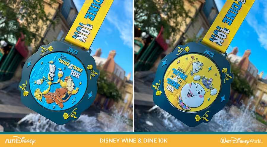 - Be our racing guest and put our 6.2-mile course to the test as the dining room proudly presents the 2023 Disney Wine & Dine 10K! Set out on a race day adventure in the great wide somewhere to earn this rotating finisher medal featuring Lumiere, Cogsworth and the other enchanted castle residents from Disney Animation’s “Beauty and the Beast."