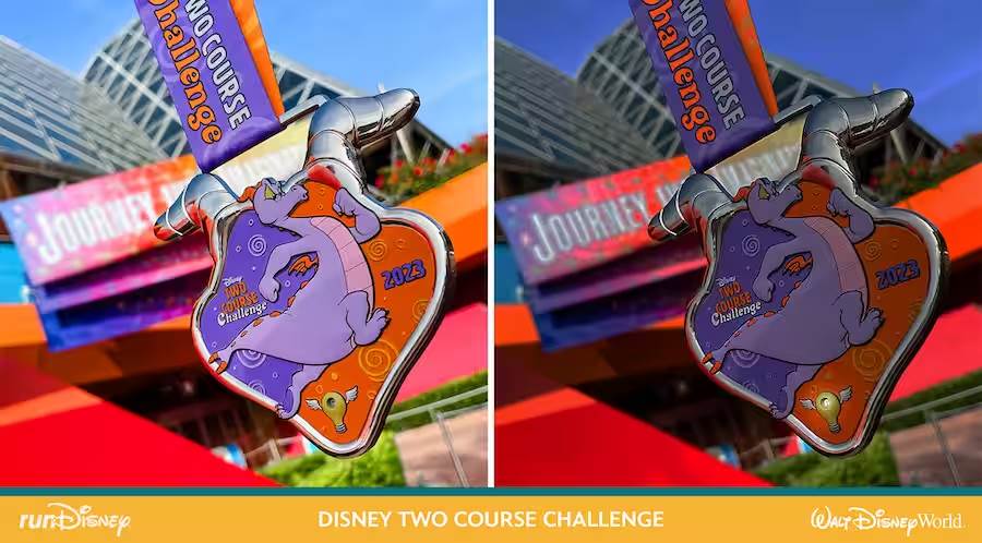 - Let your imagination (and endurance) run wild as you head to Figment’s Open House for a visit into his topsy-turvy kitchen during the 2023 Disney Two Course Challenge. Participants will need just one spark of “run"spiration to complete both the Disney Wine & Dine 10K and Half Marathon, for a total of 19.3 miles, and earn this specialty challenge medal that even has its own spark of light!