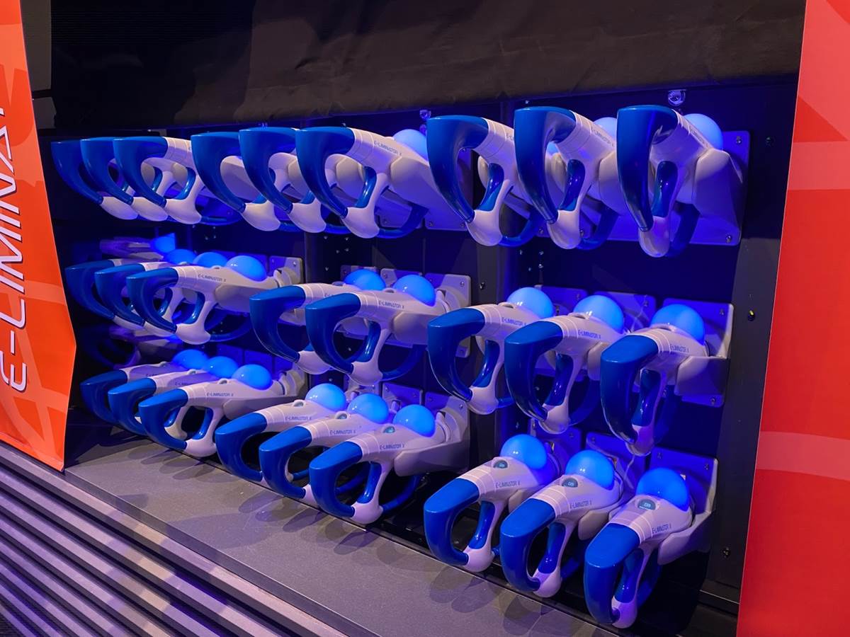 Arriving on store shelves today, guests can now purchase their own “E-Liminator X" blaster at the Evil Stuff gift shop for $35.