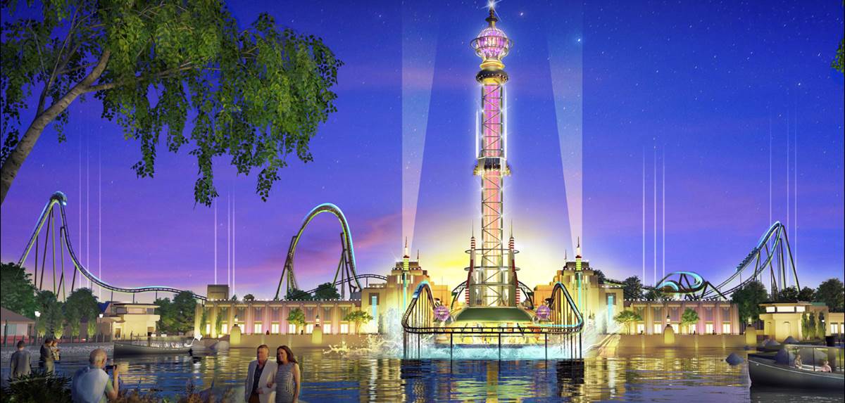 • The 125-acre theme park will feature a collection of six distinctly American lands to welcome guests on a journey through the best of the American story. Families will find thrilling rides and heartwarming shows as they discover Great Plains, Bayou Bay, Big Timber Falls, Stony Point Harbor, Liberty Village and Electropolis.