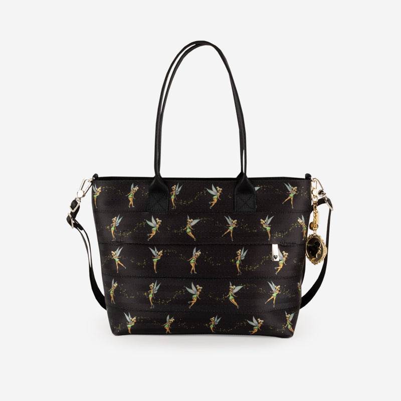 - While the beloved film is celebrating its 70th anniversary, Harveys is emphasizing the spirited Tinker Bell with a look all her own. Their signature seatbelt bags now feature a Tinker Bell pattern with the winged pixie striking several poses and surrounded (naturally) by pixie dust. She’s set against a black background so that her colorful look truly stands out.