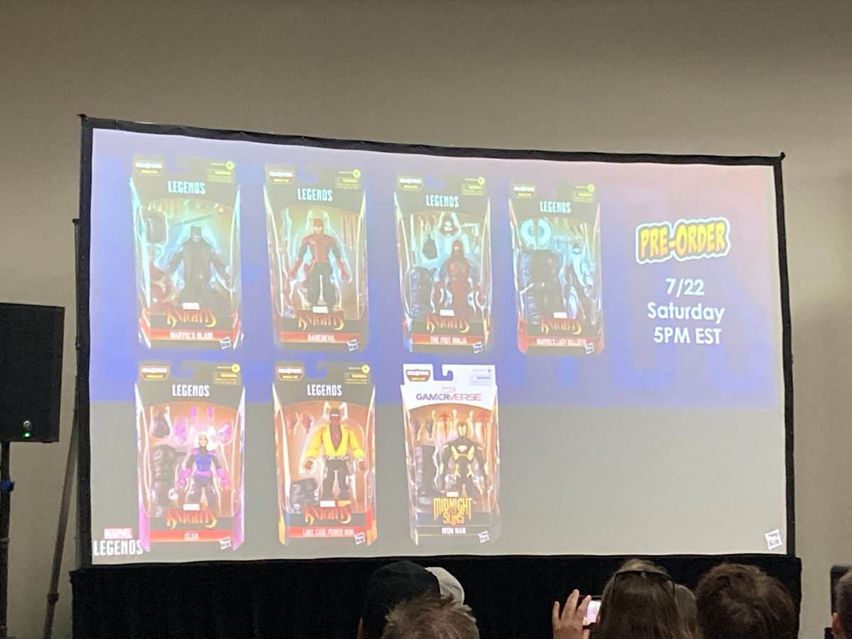 Next, we got a look at another Build-A-Figure wave, featuring a Midnight Suns Iron Man, Daredevil, Lady Bullseye, The First Ninja, a classic Luke Cage, Clea and Blade.