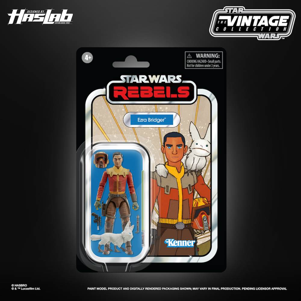 - Tier #1 (Threshold: 11,000 Backers): EZRA BRIDGER Exclusive Star Wars Rebels Vintage Collection Carded Figure