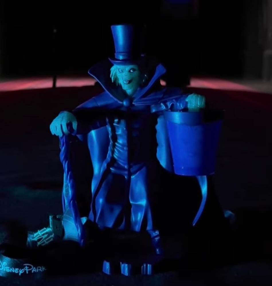 - In the video that Disney shared, you can see the ghost face on his head and in the hat box light up.