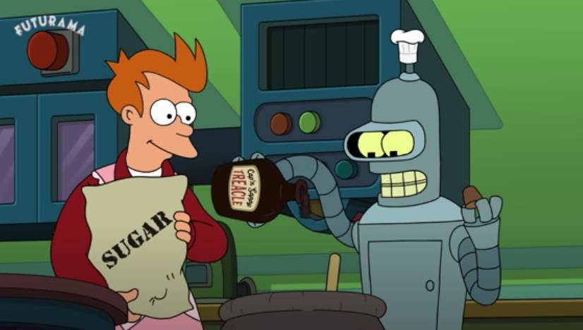 - In the opening scene from the second episode of Hulu’s new season of Futurama, Fry and Bender try to recreate a candy that hasn’t been made in a thousand years.