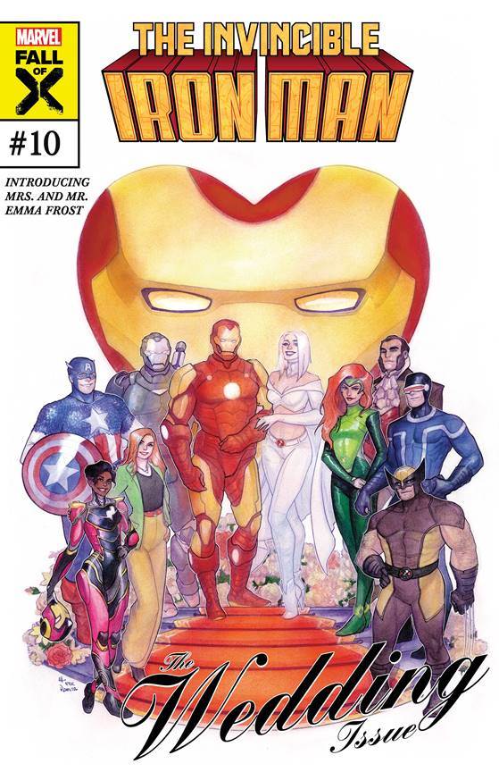 Hitting stands next month, “X-Men #26" and "Invincible Iron Man #10" will feature the long-awaited wedding between Emma Frost and Tony Stark! Current “X-Men" and "Invincible Iron Man" writer Gerry Duggan will deliver this moment that fans never thought would happen, alongside series artists Stefano Caselli (“X-Men") and Juan Frigeri ("Invincible Iron Man").