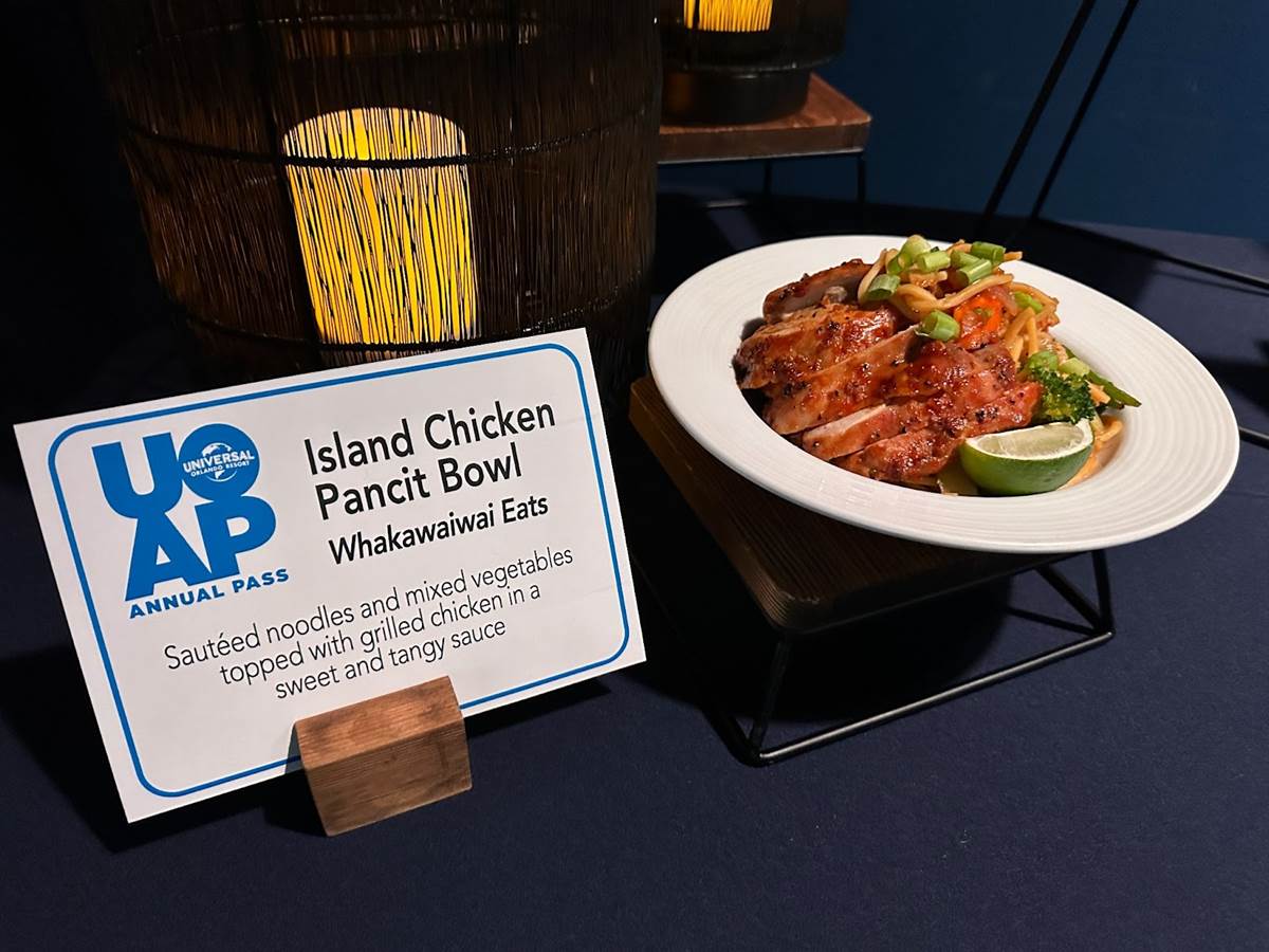 - At Volcano Bay, UOAPs can head to Whakawaiwai Eats for the Island Chicken Pancit Bowl, consisting of sauteed noodles and mixed vegetables topped with grilled chicken in a sweet and tangy sauce.
