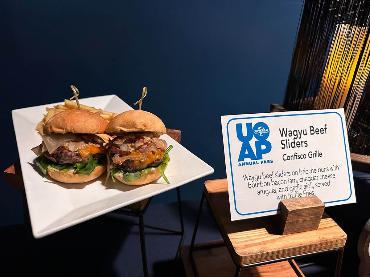 - One of those items is the Wagyu Beef Sliders seen above, which can be found at Confisco Grille and come served on brioche buns with bourbon bacon jam, cheddar cheese, arugula and garlic aioli and are served with truffle fries.