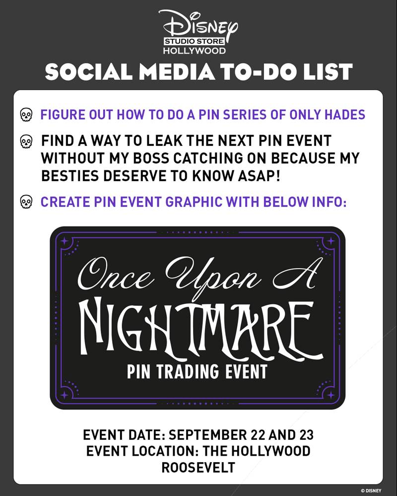 The Disney Studio Store Hollywood posted on their official Facebook page “leaking" an upcoming pin trading event called “Once Upon a Nightmare."