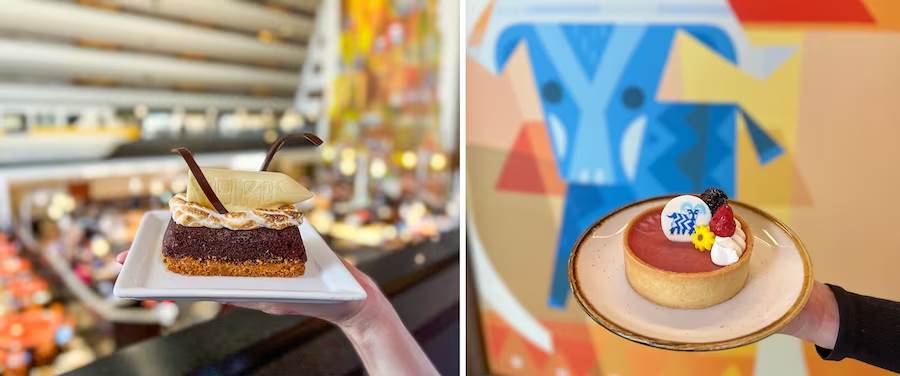 - For a fruity flavor, the 5-Legged Goat Fruit Tart draws inspiration from the iconic Mary Blair Grand Canyon Concourse mural’s 5-Legged Goat. This bite features a vanilla tart shell filled with raspberry-lemon curd topped with fresh fruit and lemon whipped cream.