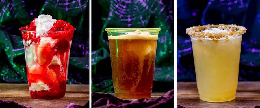- Oogie Boogie Apple Lemonade: Green apple lemonade with cherry-flavored popping spheres and raspberry sauce (Non-alcoholic)