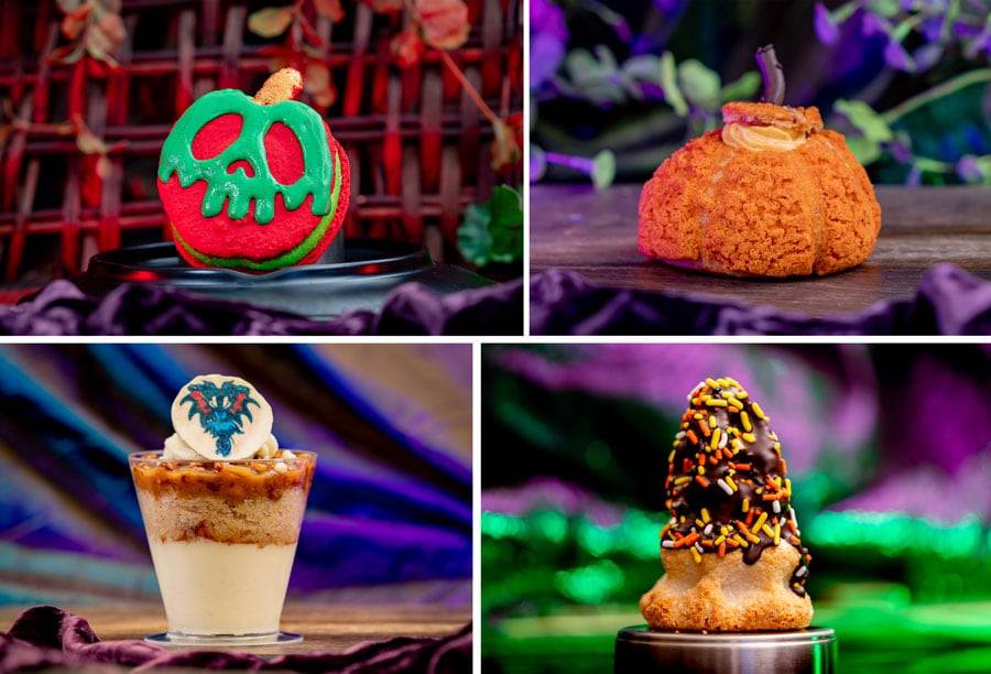- Poison Apple Funnel Cake Fries: Dusted with cinnamon sugar and topped with candied apple compote, whipped topping, and green apple glaze (New)
