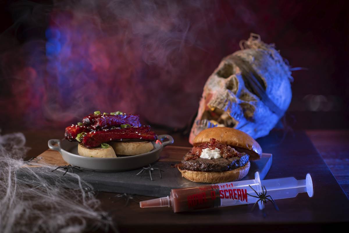 - Alongside the specialty bars are frightening food offerings like the Vampire Burger, Bloody Rids, Dead Flesh, and The Ofrenda.