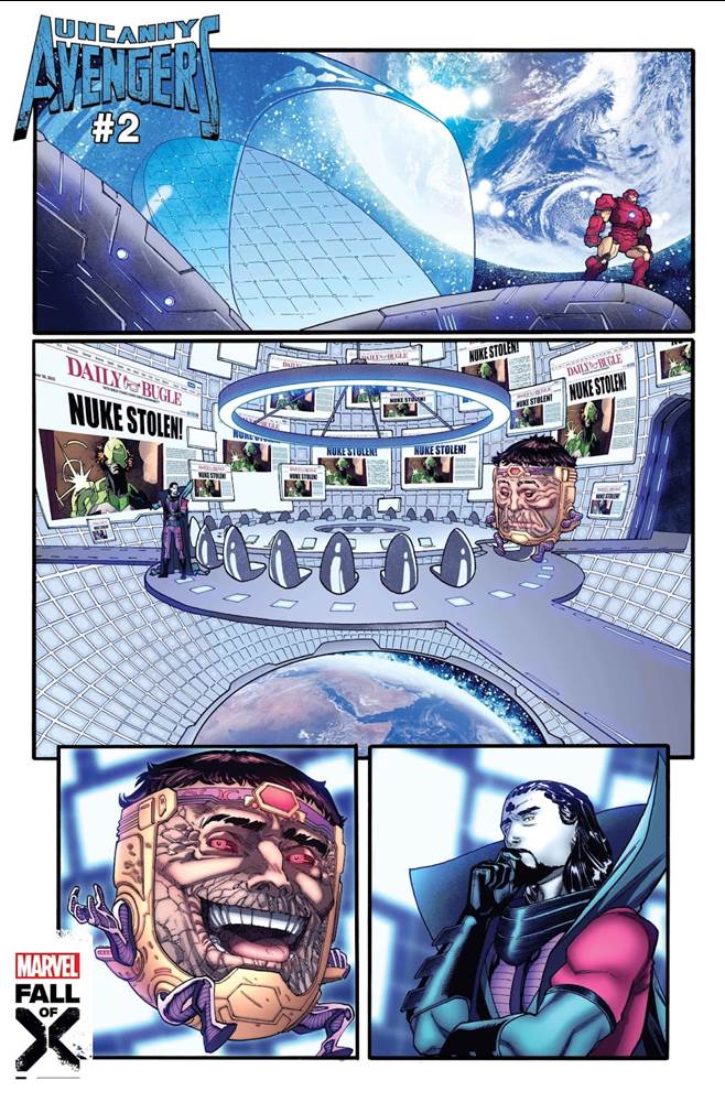 - Another page checks in with M.O.D.O.K. and Doctor Stasis, who observe the fallout of Captain Krakoa's latest mission from their space lair.